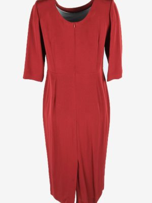 Plain Midi Dress Vintage Crew Neck 3/4 Sleeve Casual 80s Burgundy XL