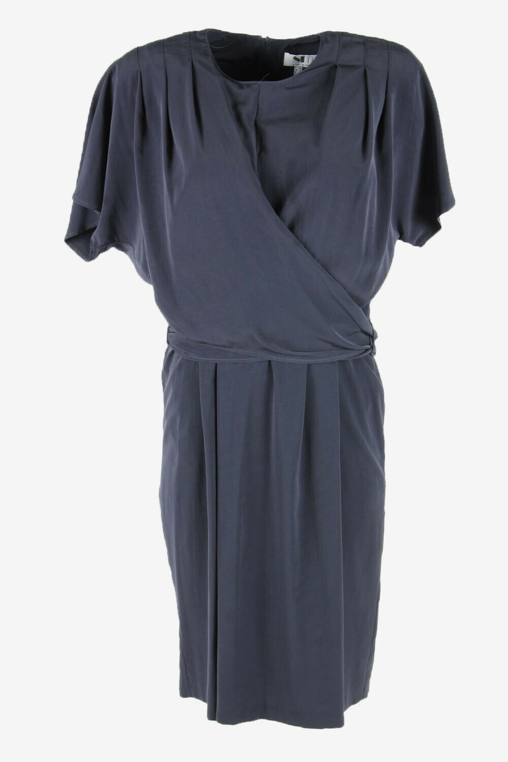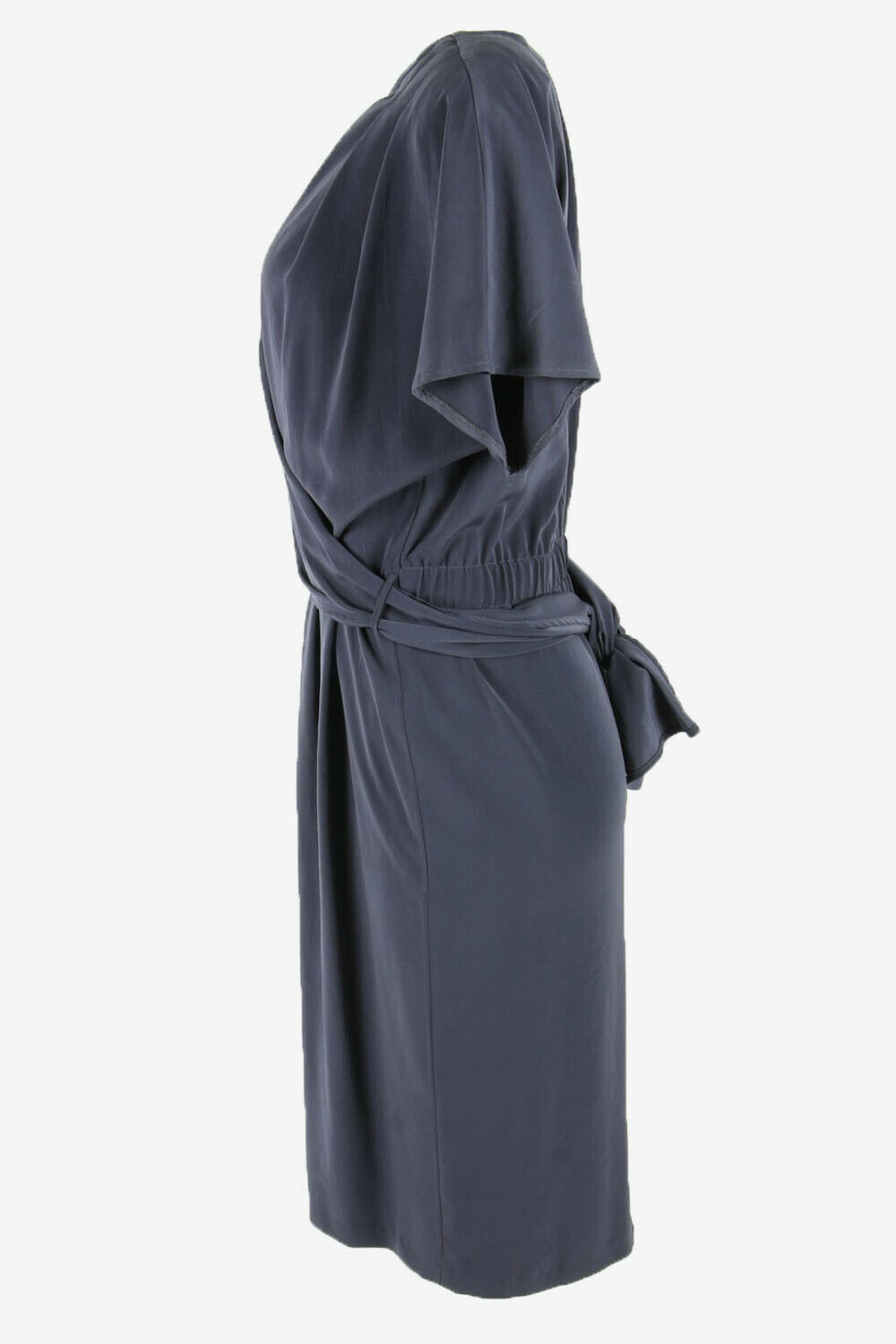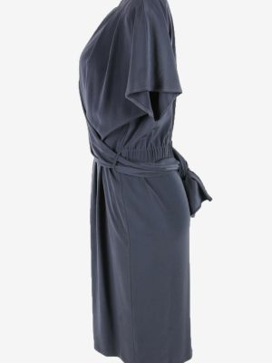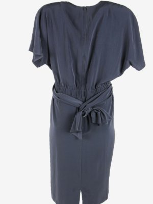 Plain Midi Dress Vintage Crew Neck Formal Casual Retro 90s Grey M