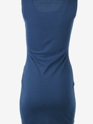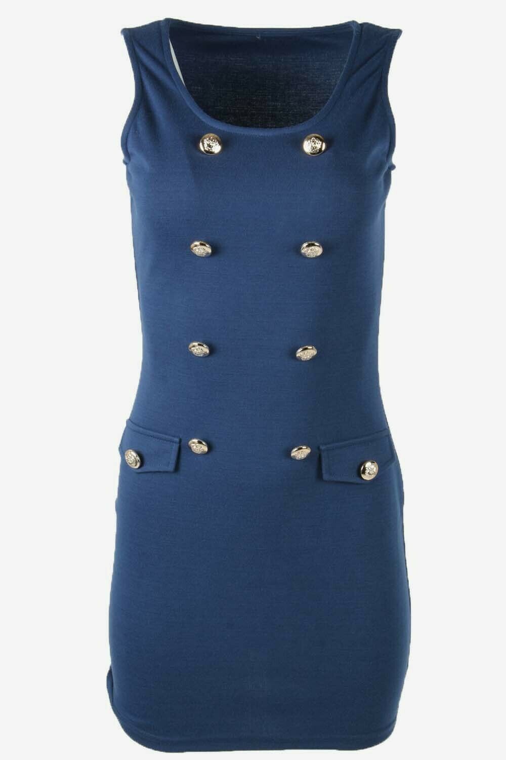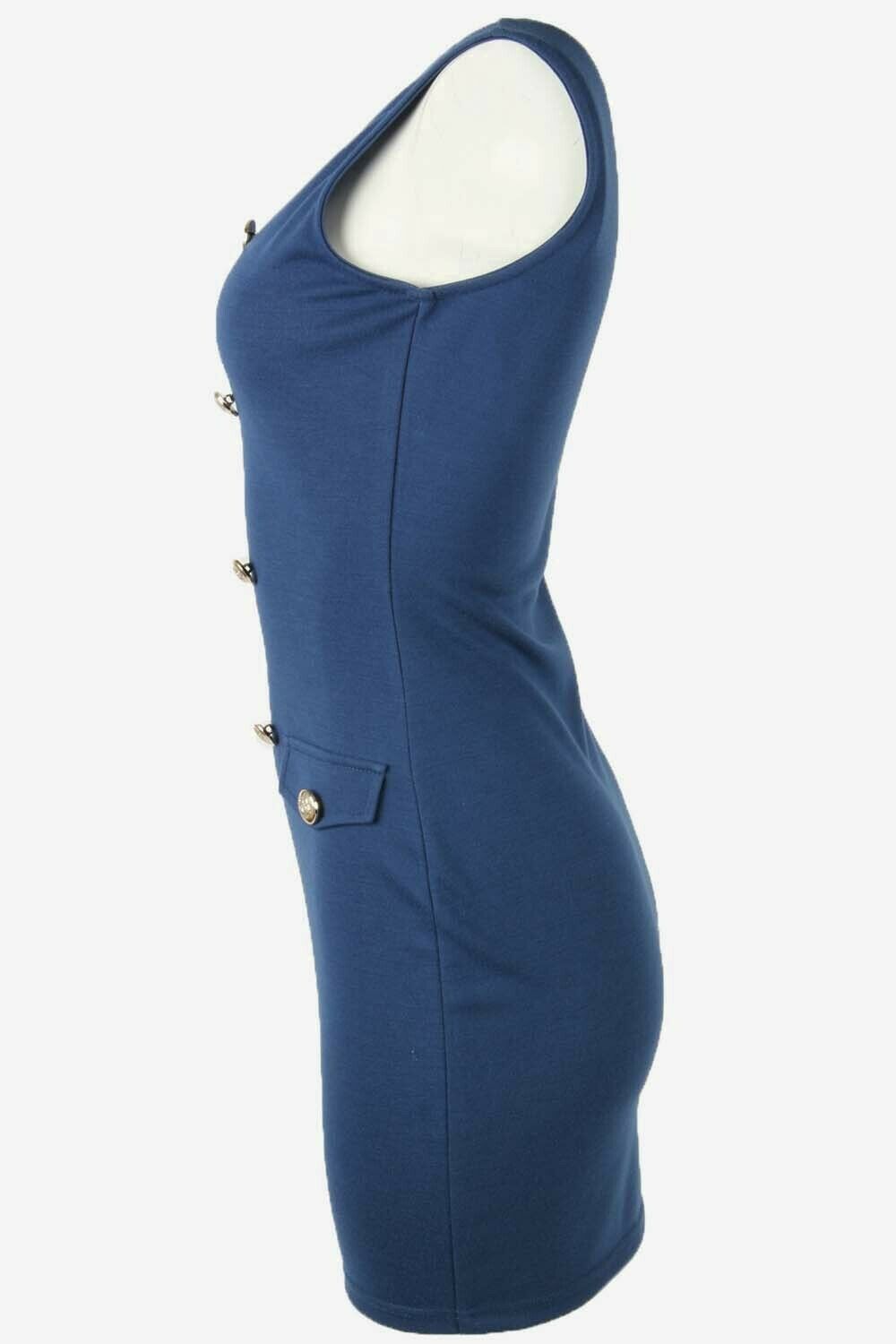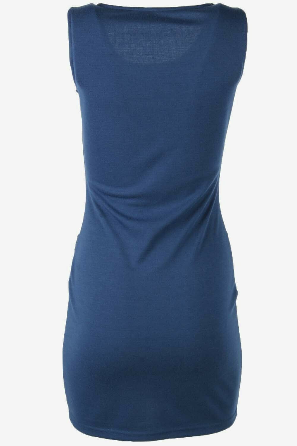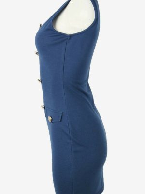 Plain Mini Dress Vintage Square Neck Bodycon Retro 90s Navy UK 4/6
