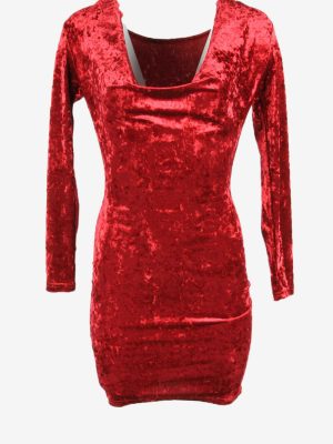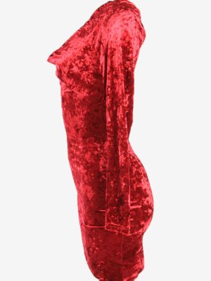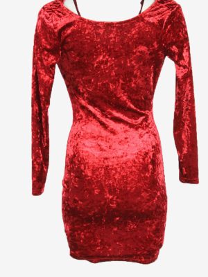Plain Mini Velvet Dress Vintage V Neck Long Sleeve Party Burgundy Size S