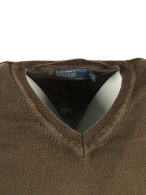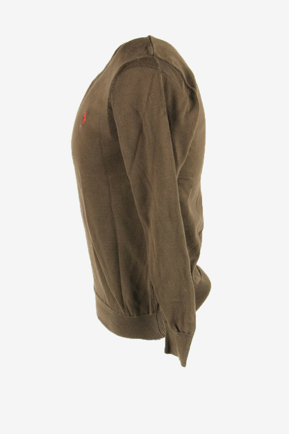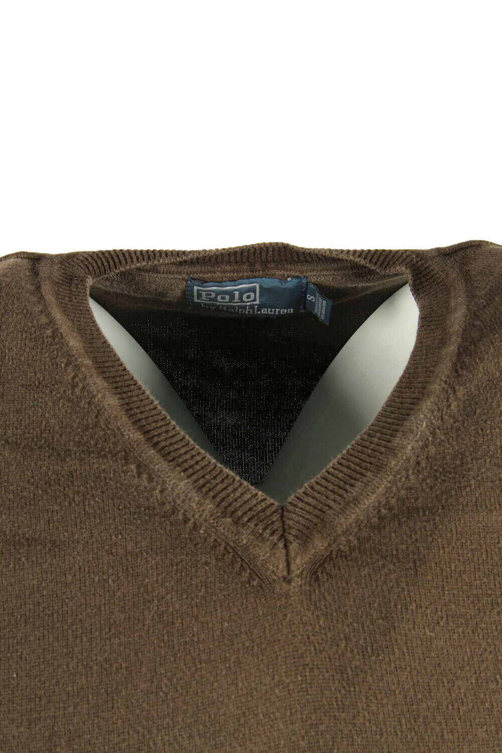 Polo Ralph Lauren Plain Vintage Sweater V Neck Jumper Brown Size S