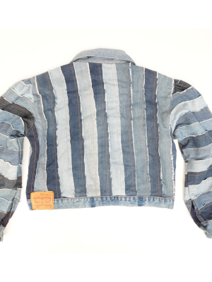 This Puff Sleeve Remake Denim Jacket is a bold fusion of feminine design and Y2K attitude, crafted through up-cycling for a truly unique result. Made from recycled denim in a mix of blue tones, each piece is entirely different—with variations in wash, detail, and finish that make every jacket one of one.