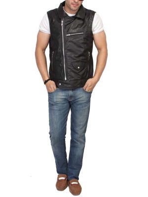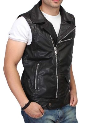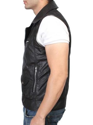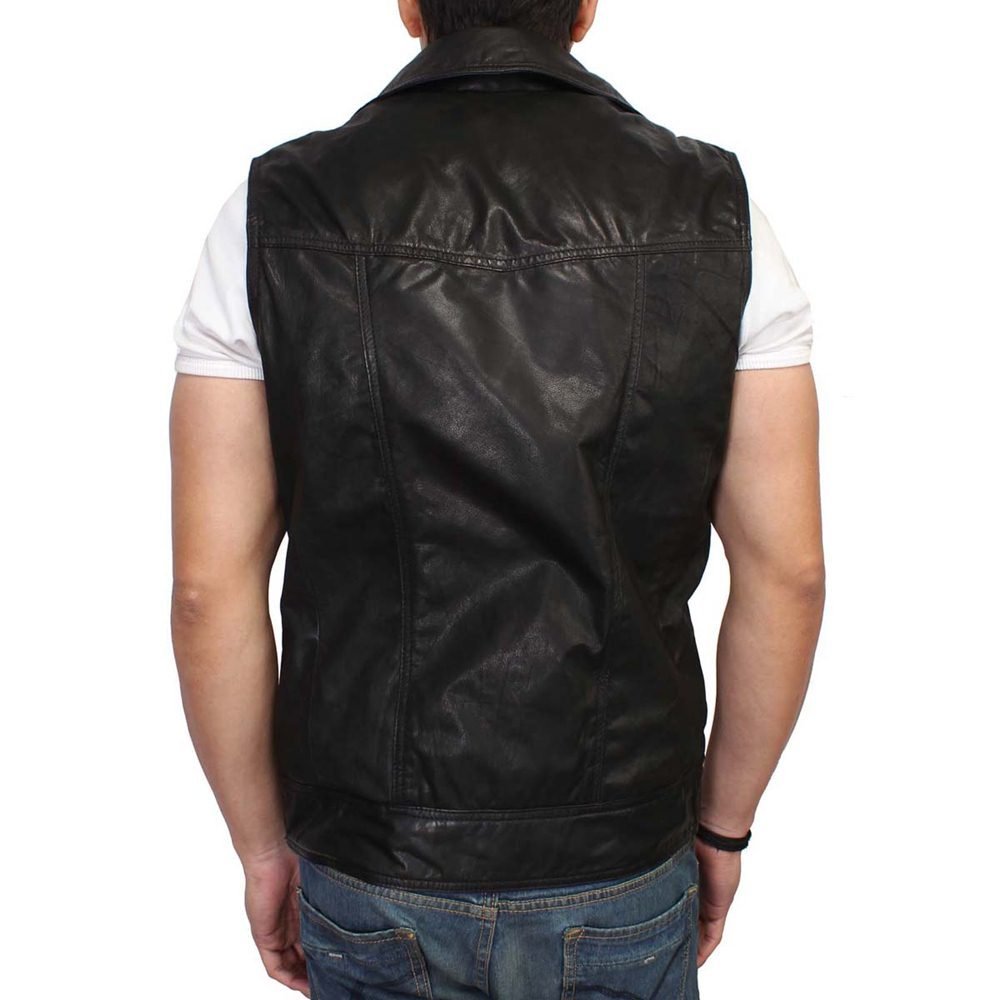 Brand New Mens Black Real Leather Biker Waistcoat Jacket is made from Black Soft Sheep Leather