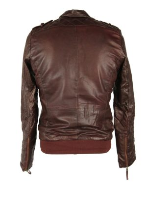 Brand New Mens Brown Real Leather Bomber Biker Racer Jacket is made from Brown Soft Sheep Leather with antique gold zips