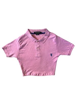 US Polo Crop Top Reworked Upcycled 90s Vintage Shirt Pink XS