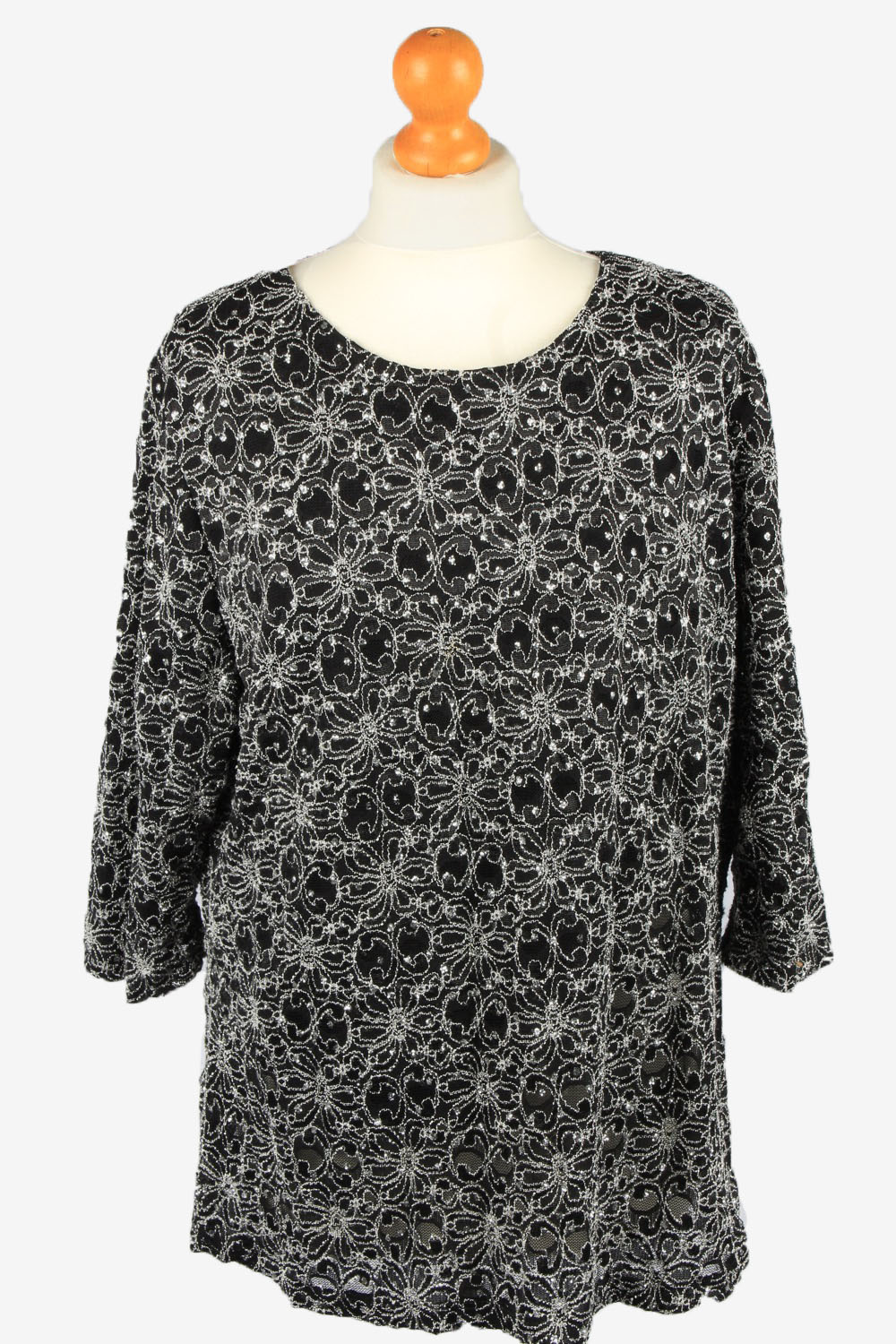 • Sequined Beaded Top Blouse Vintage Womens 80s 1X Black -LB347-150308