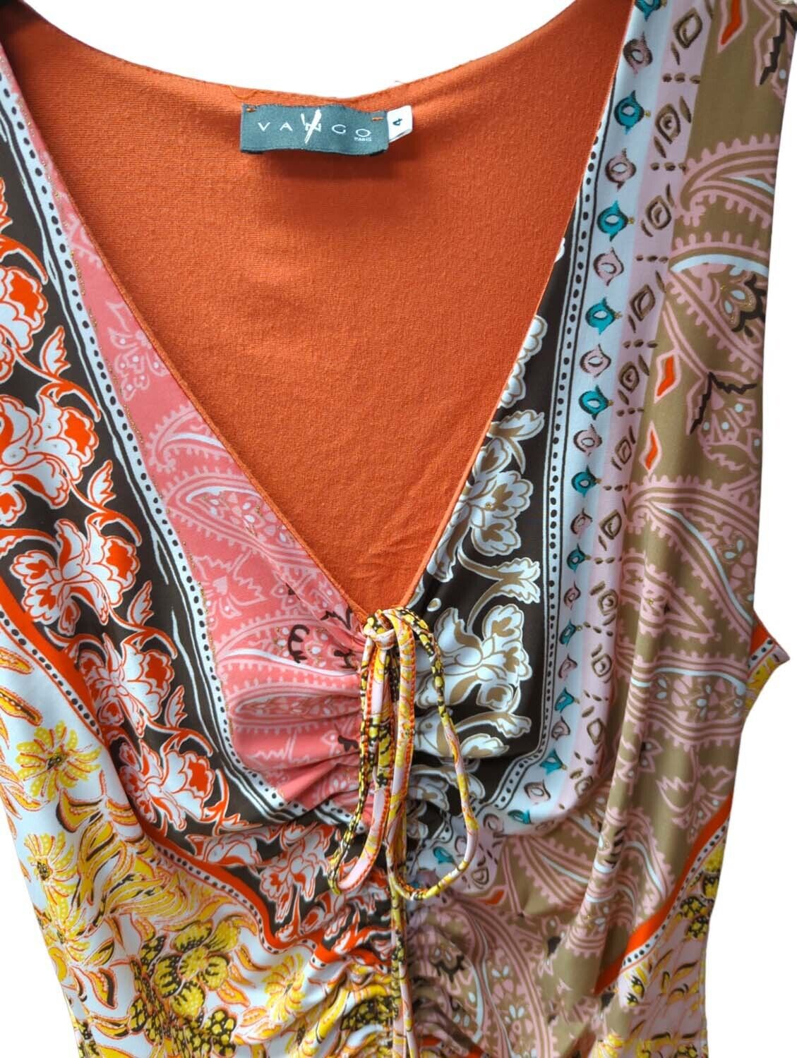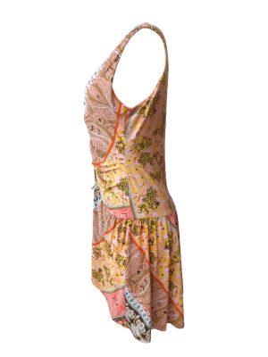 Shift Dress Paisley Sleeveless Gathered Front Midi V-Neck M