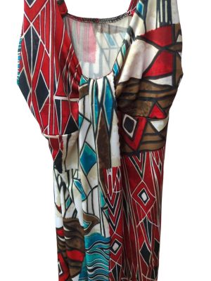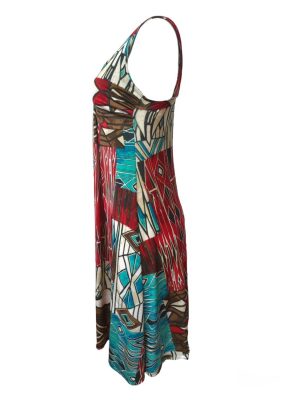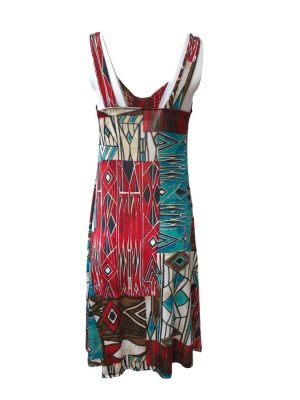 Shift Dress Patchwork Sleeveless Self-Tie Plunge-V Printed Midi Size M/L