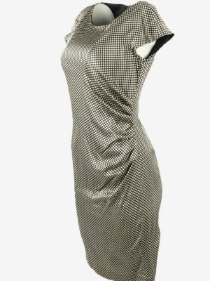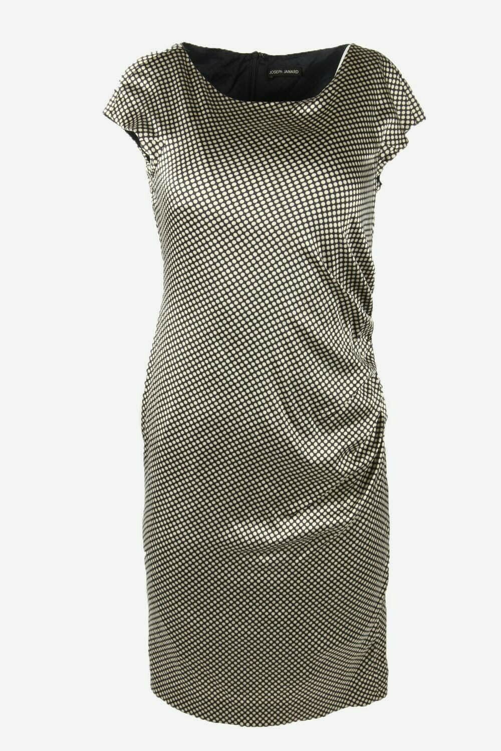 Silk Midi Dress Vintage Belted Polka Dot 90s Black UK 10