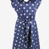 Striped Maxi Dress Vintage Crew Neck Elastic Waist Elegant Navy S