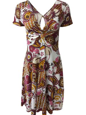 Sweet Miss Jersey Dress Gathered V Neck Short Sleeve Size L