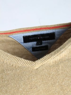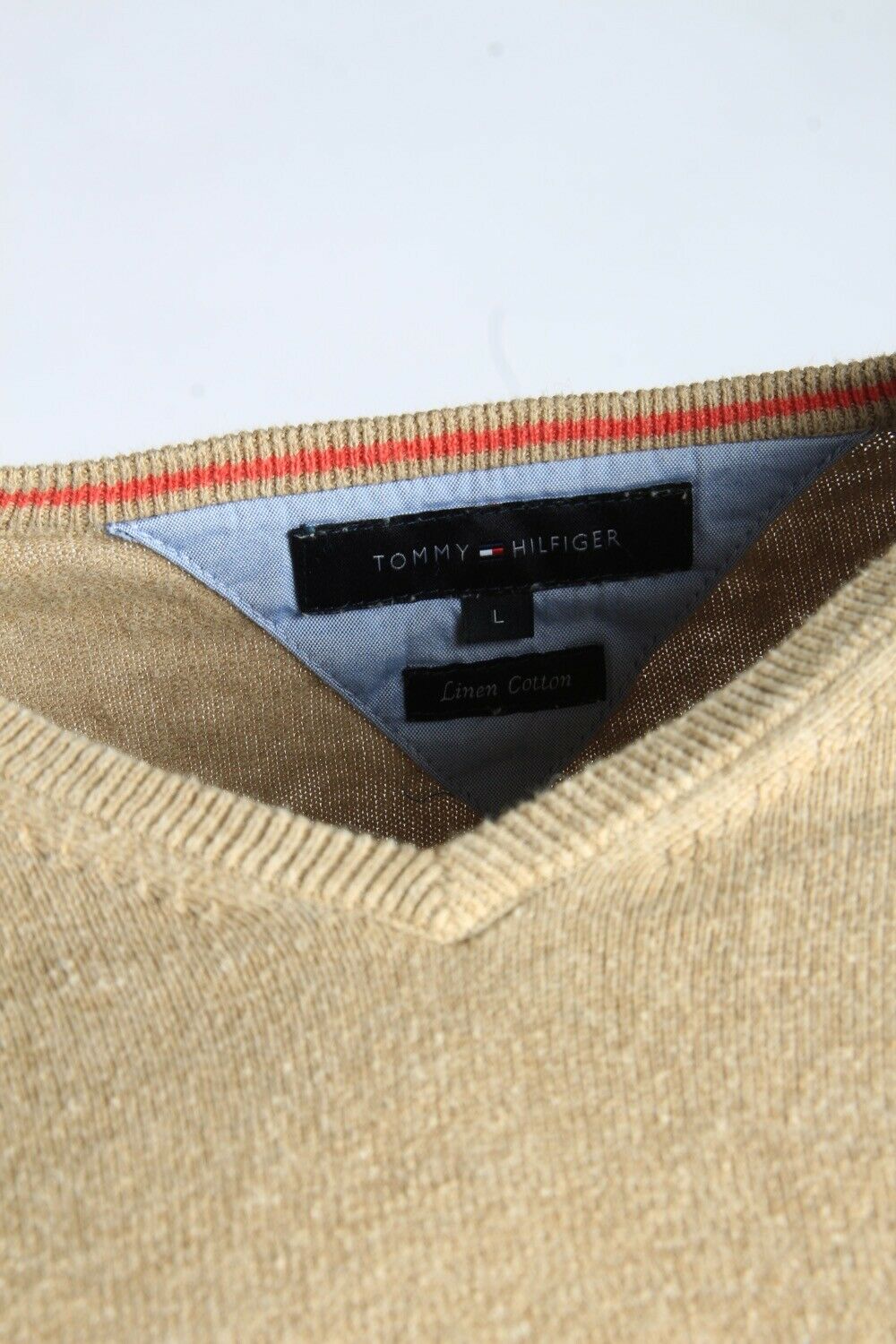 Tommy Hilfiger Diamond Sweater Vintage V Neck Golf Casual Beige Size L