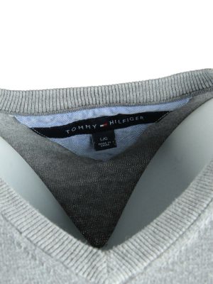 Tommy Hilfiger Diamond Sweater Vintage V Neck Golf Casual Grey Size L