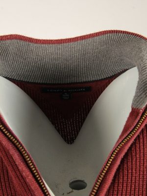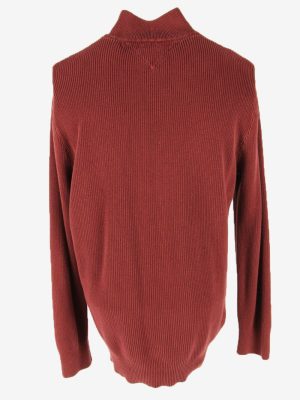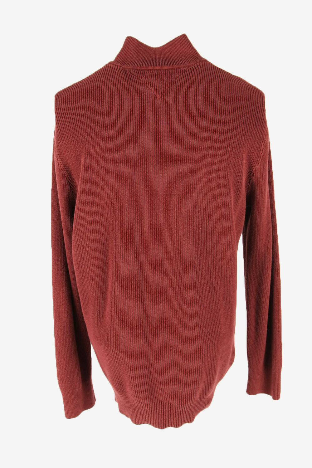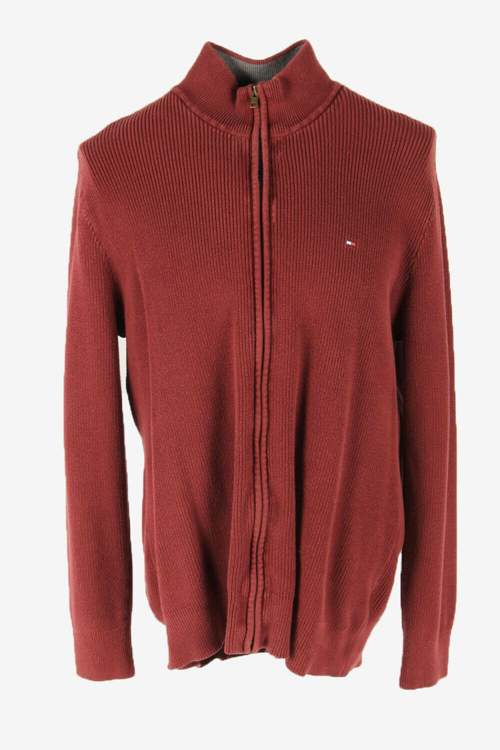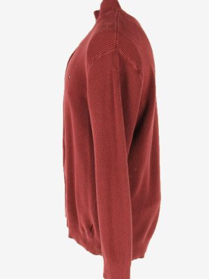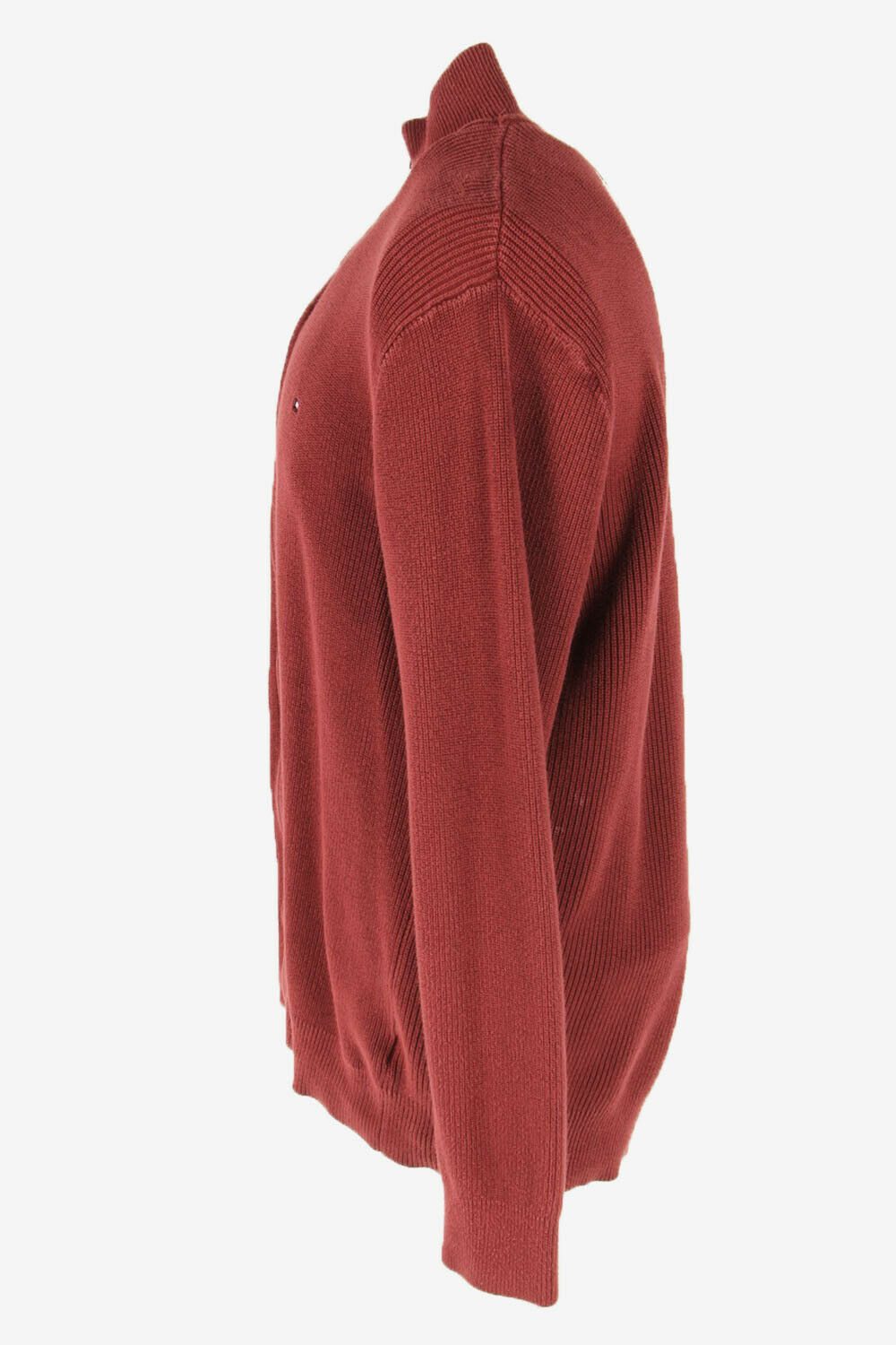Tommy Hilfiger Plain Vintage Caredigan High Neck Sweater Burgundy Size XL