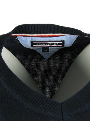 Tommy Hilfiger Plain Vintage Sweater V Neck Jumper Navy Size XS