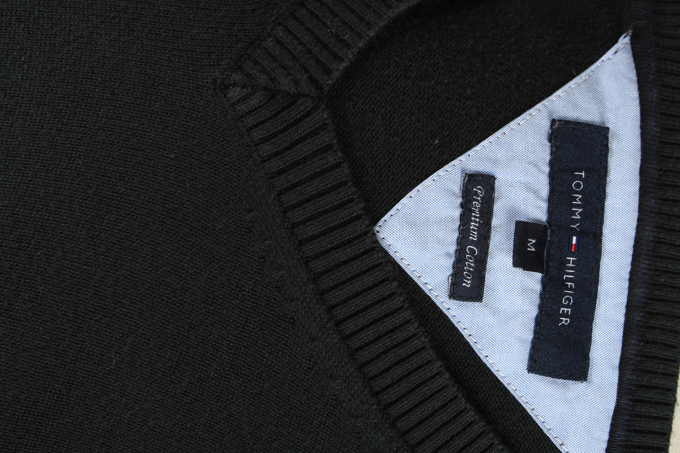 • Tommy Hilfiger V Neck Jumper Pullover Vintage Size M Black -IL2501-161416