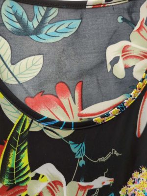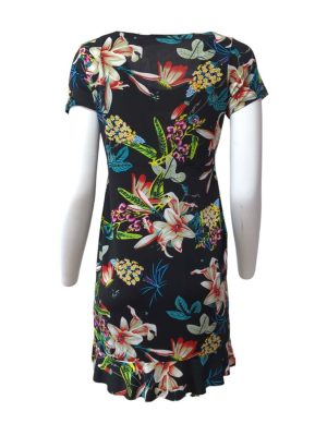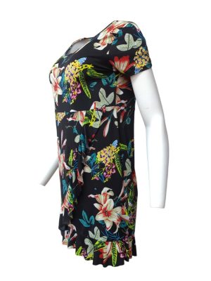 Tunic Dress Tropical Print Ruffle Trim Floral Scoop Neck One Size