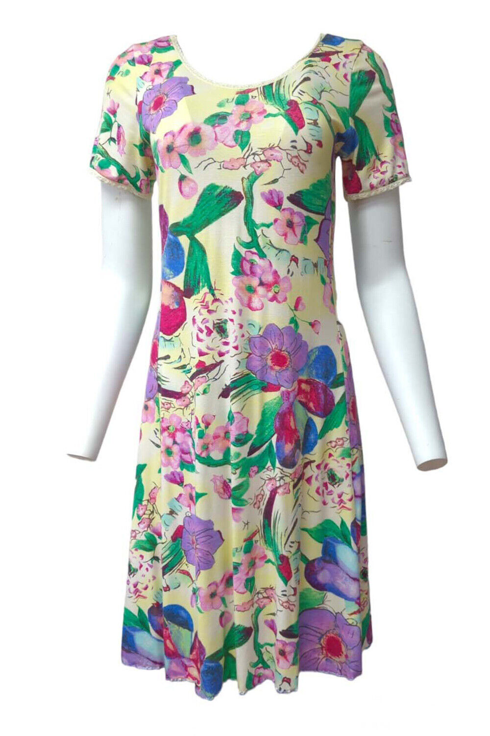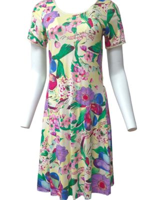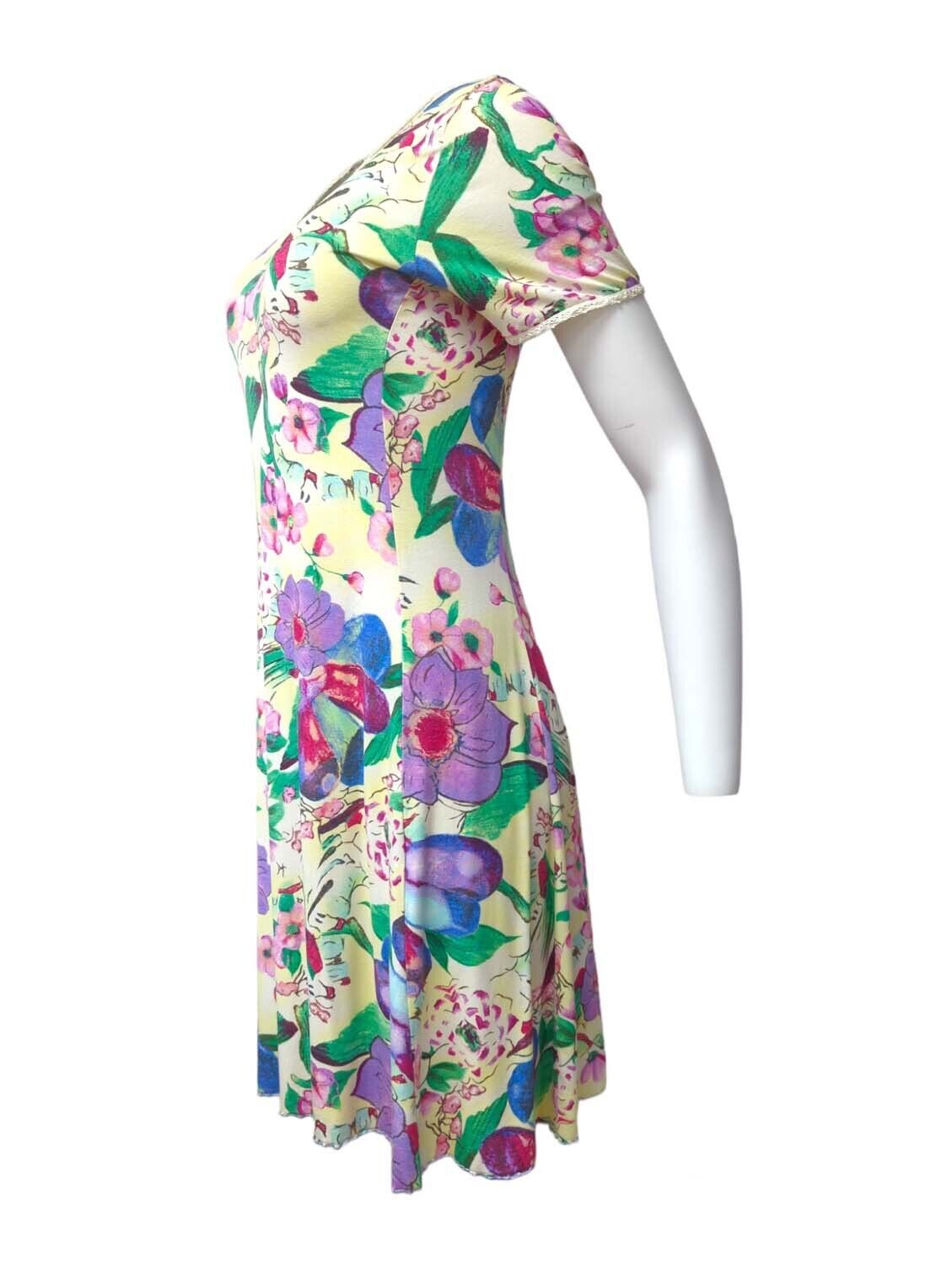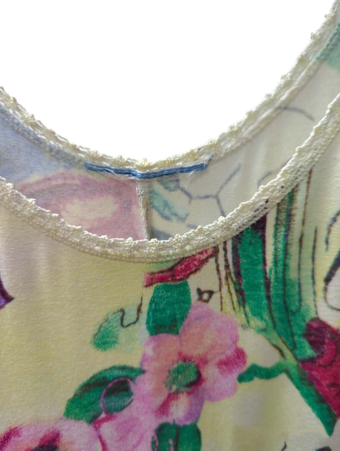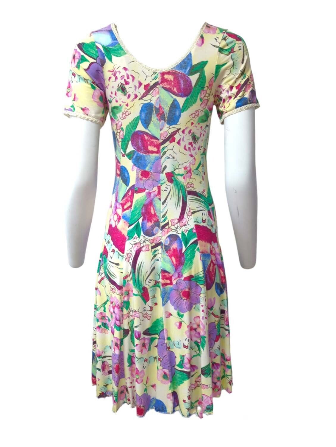 Vintage 1970s Dress Tunic Floral Midi Short Sleeve One Size