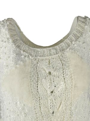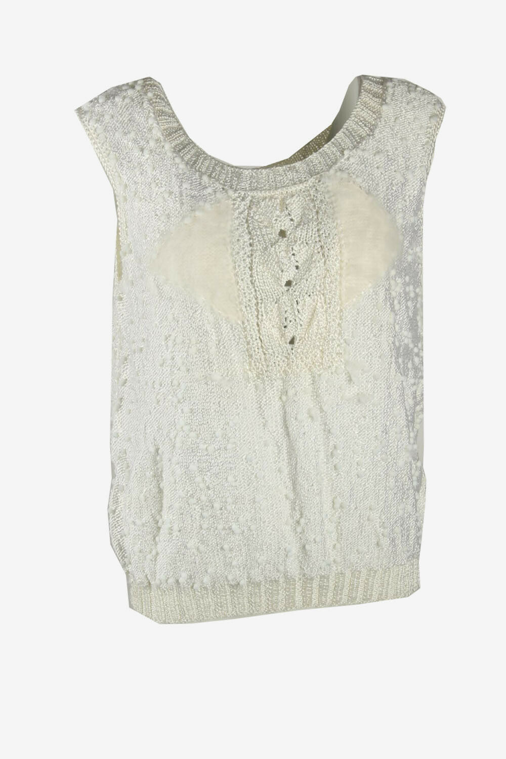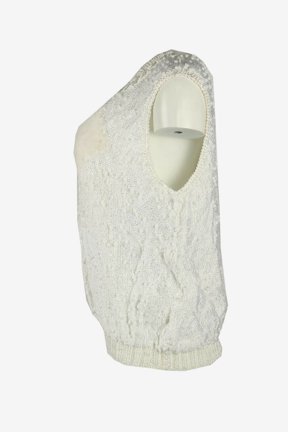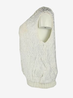Vintage Blouse Plain Sleeveless Scoop Neck Winter Retro White Size L