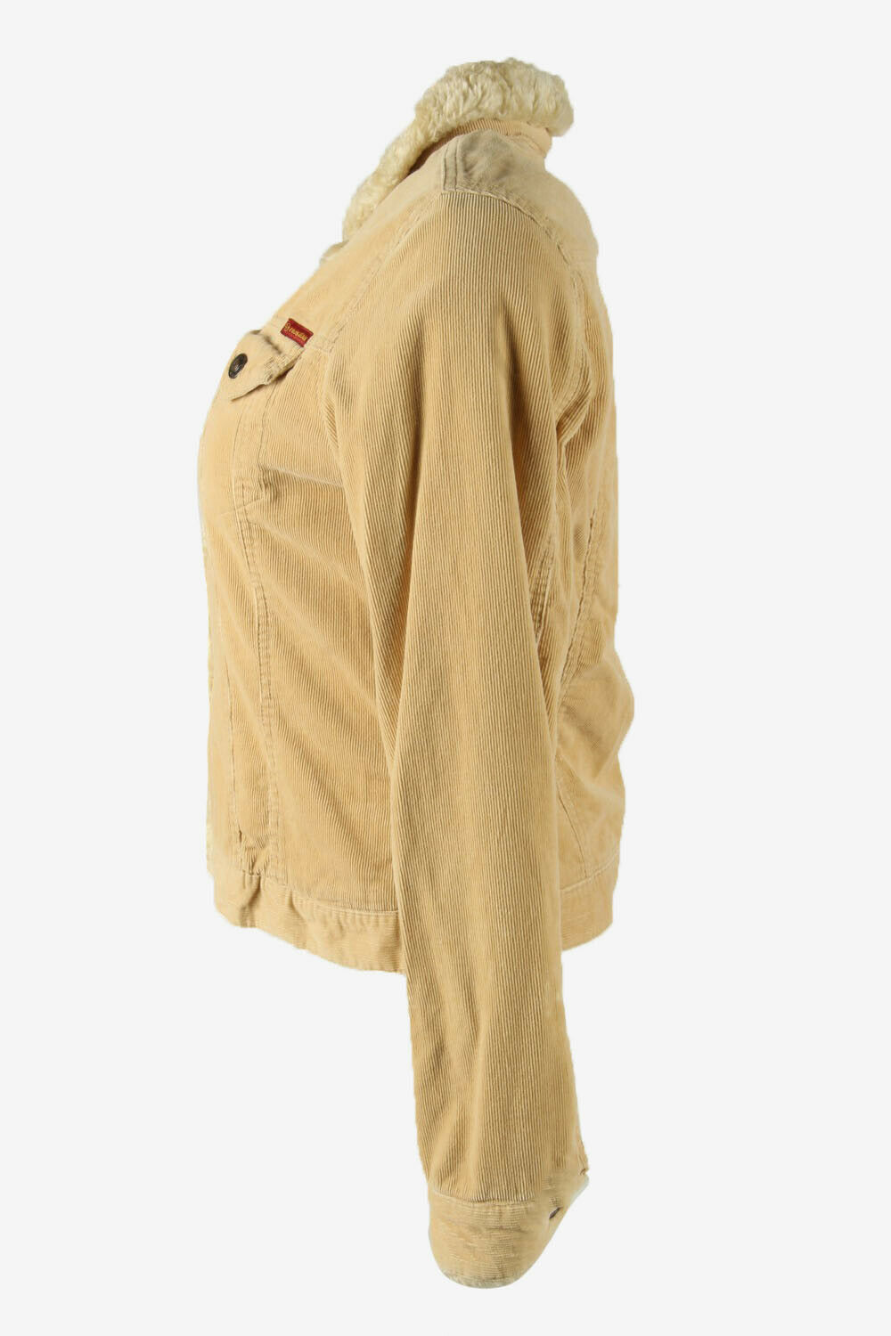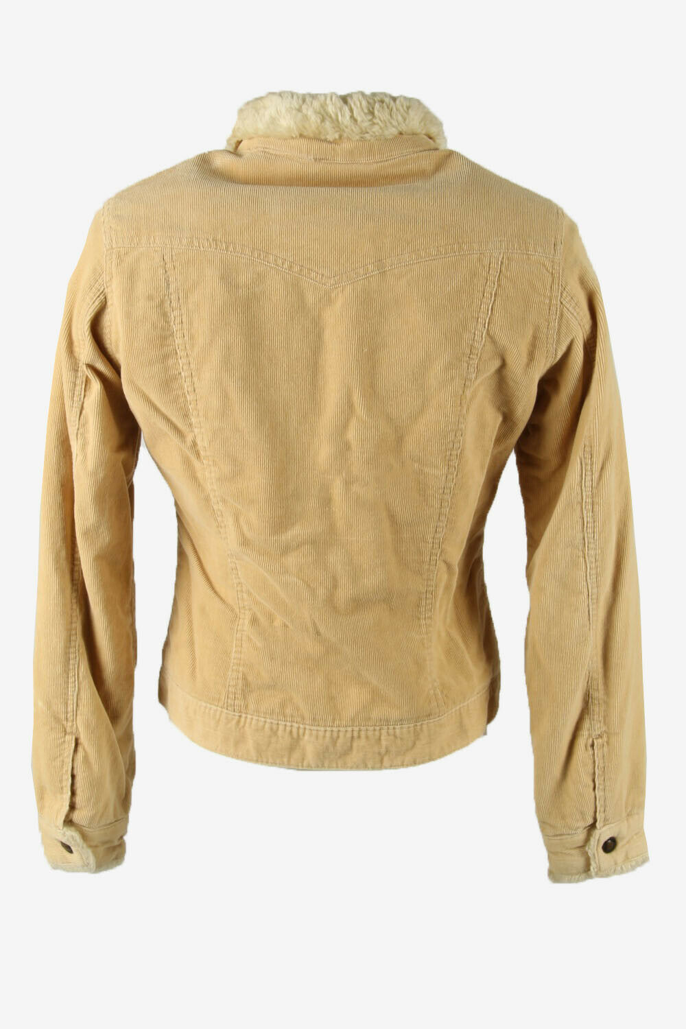 Vintage Corduroy Jacket Faux Fur Cord Snap Casual 90s Coffee Size M
