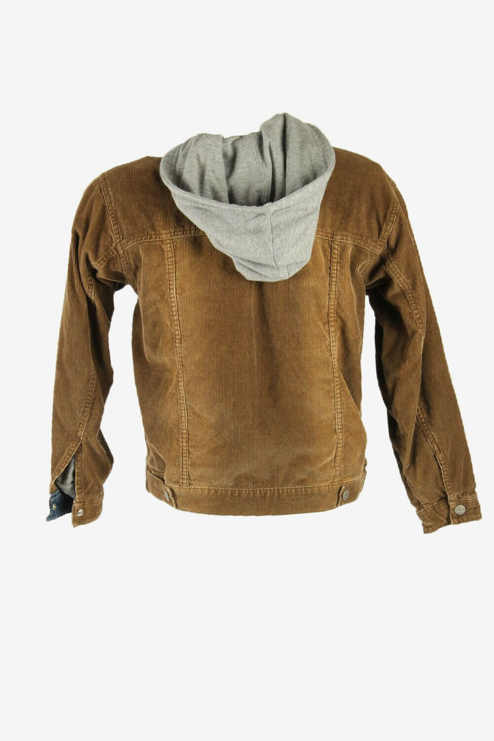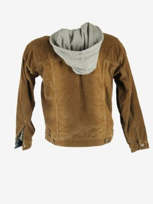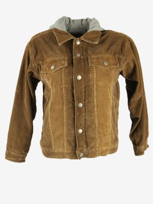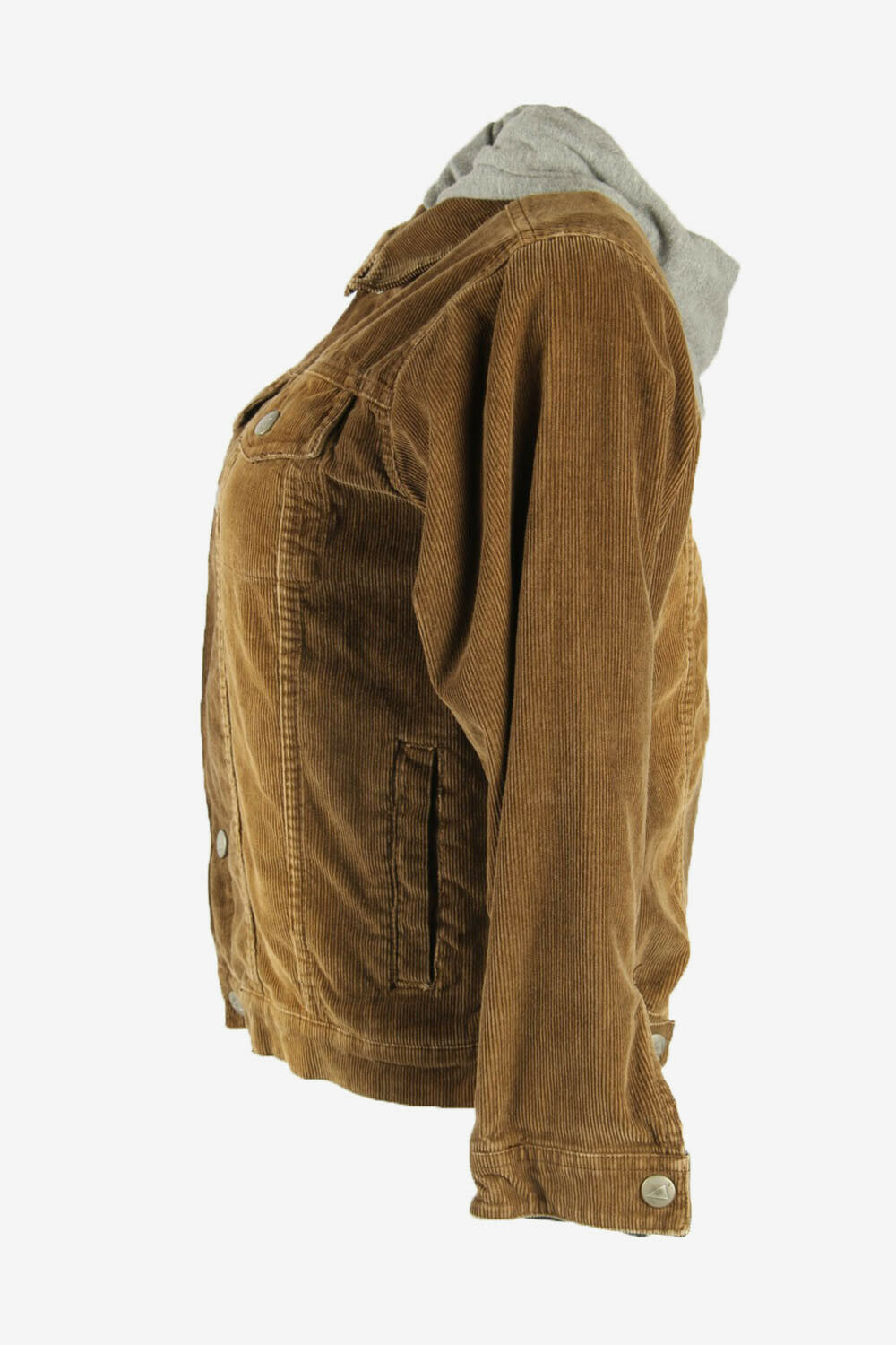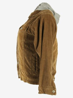 Vintage Corduroy Jacket Hooded Lined Cord Snap 90s Retro Brown Size M