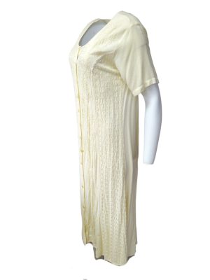 Vintage Dress Embroidered Short Sleeve Long Round Neck Ivory Size M