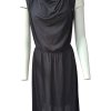 Vintage Dress Sleeveless Knee Lenght V-Neck Black Size 38
