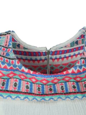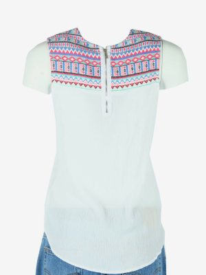 Vintage Embroidered Blouse Boho Indian Tunic Kaftan Smock White Size S