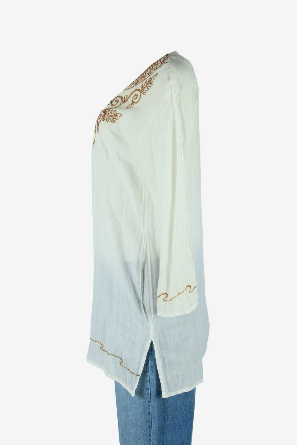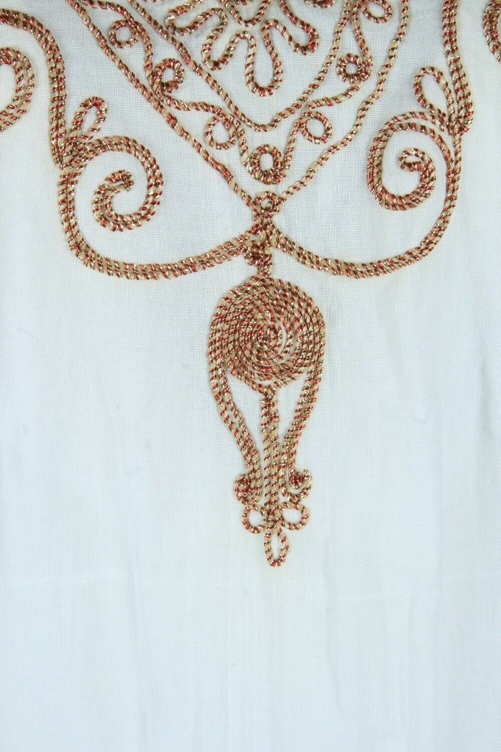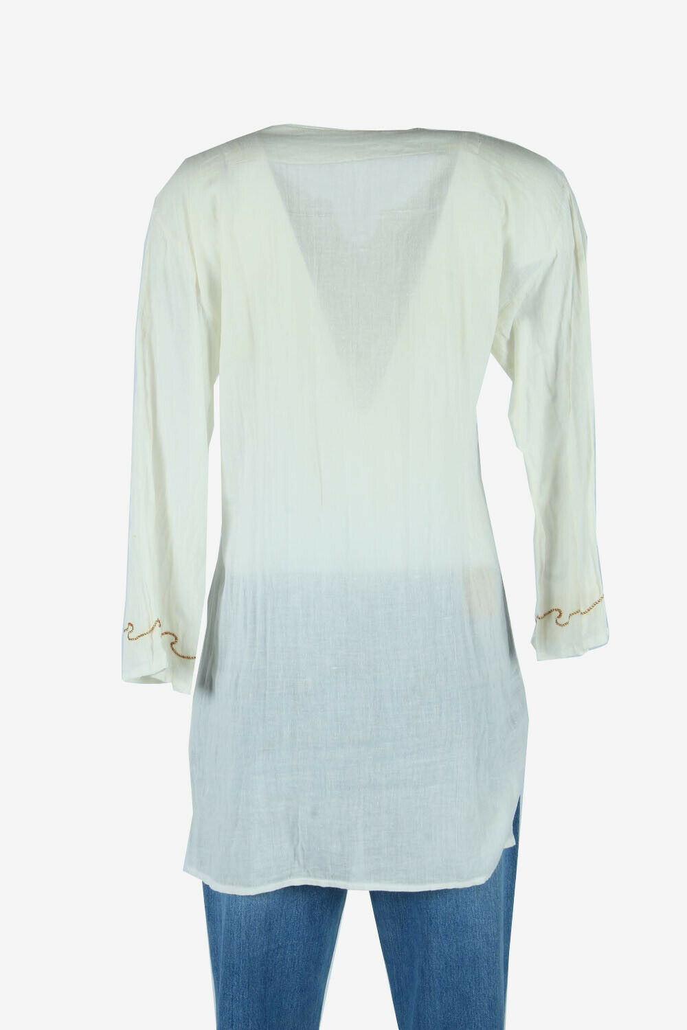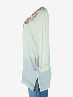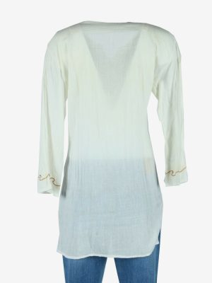Vintage Embroidered Blouse Cotton Hippie Gypsy Top Kaftan White Size M