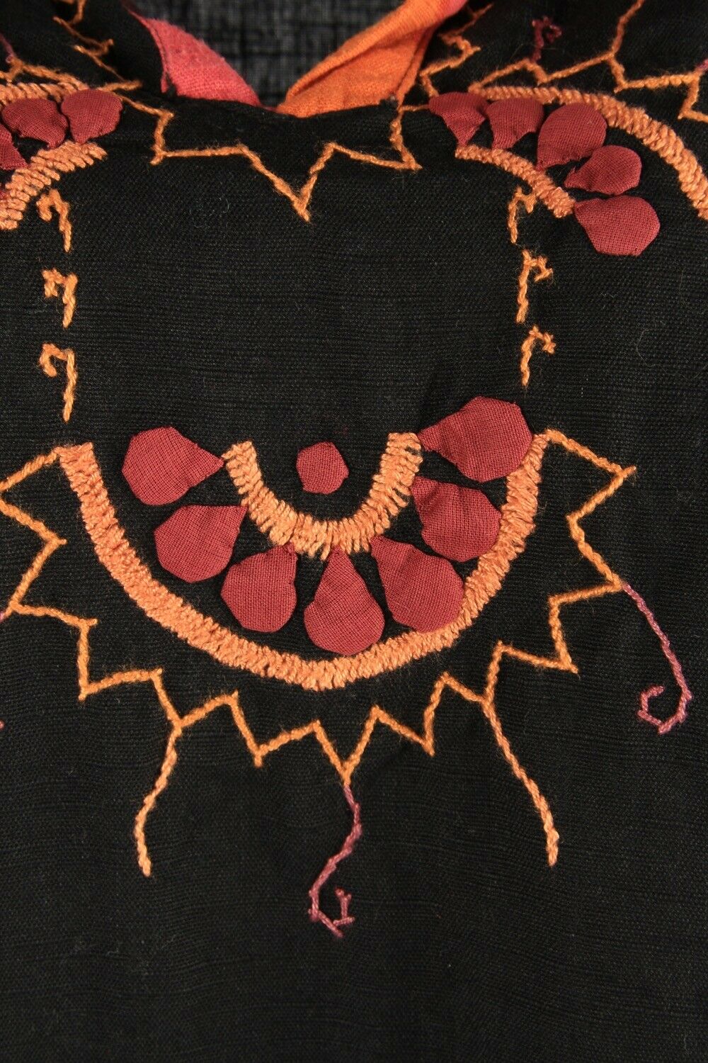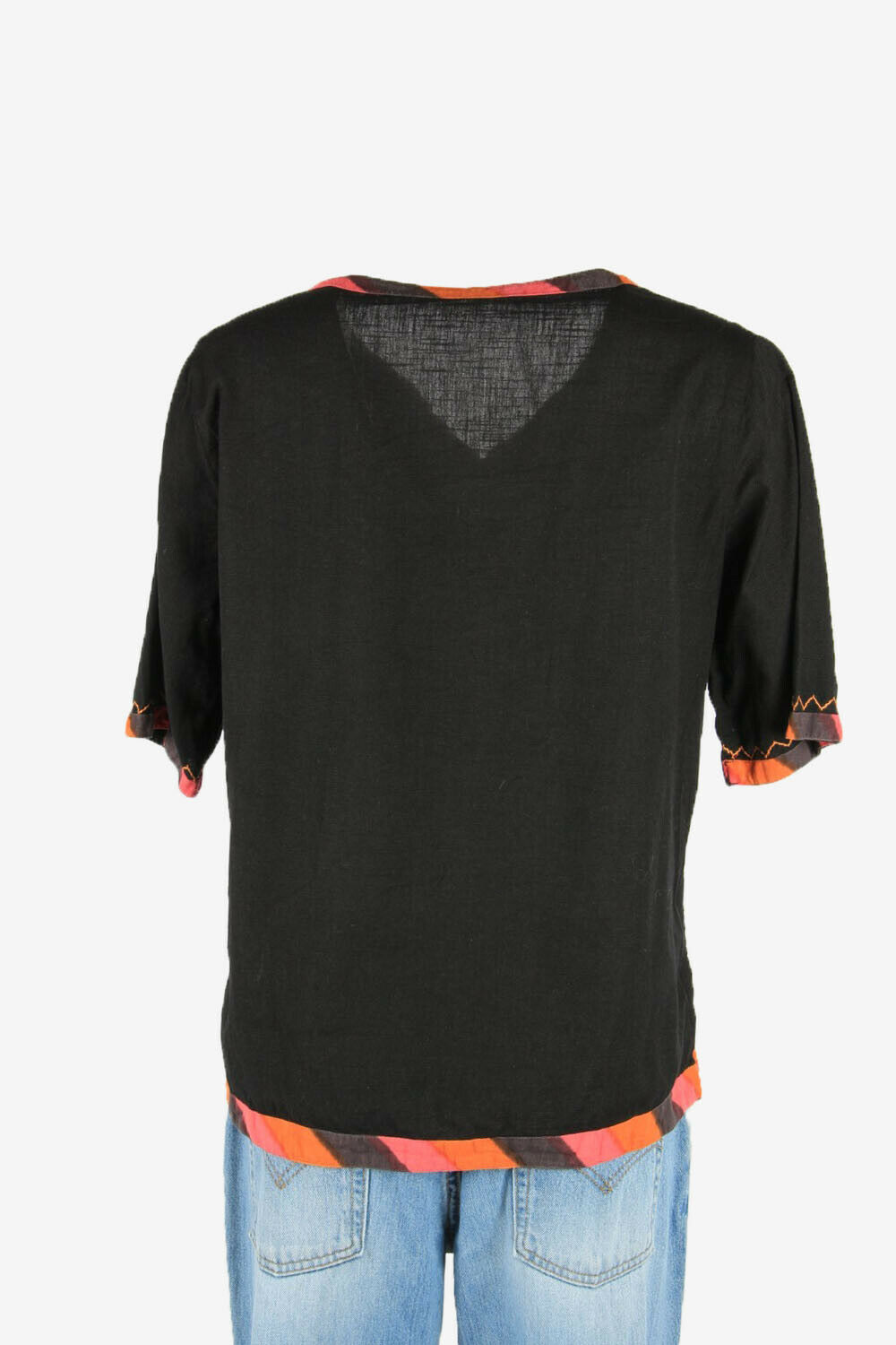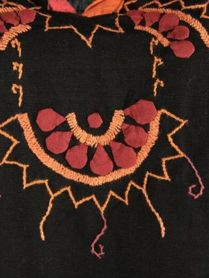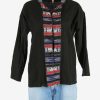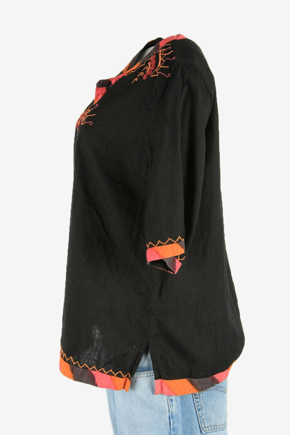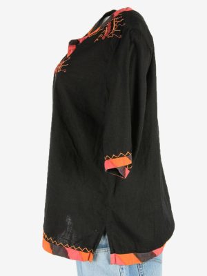 Vintage Embroidered Hippie Gypsy Blouse Tunic Top Kaftan Black Size L