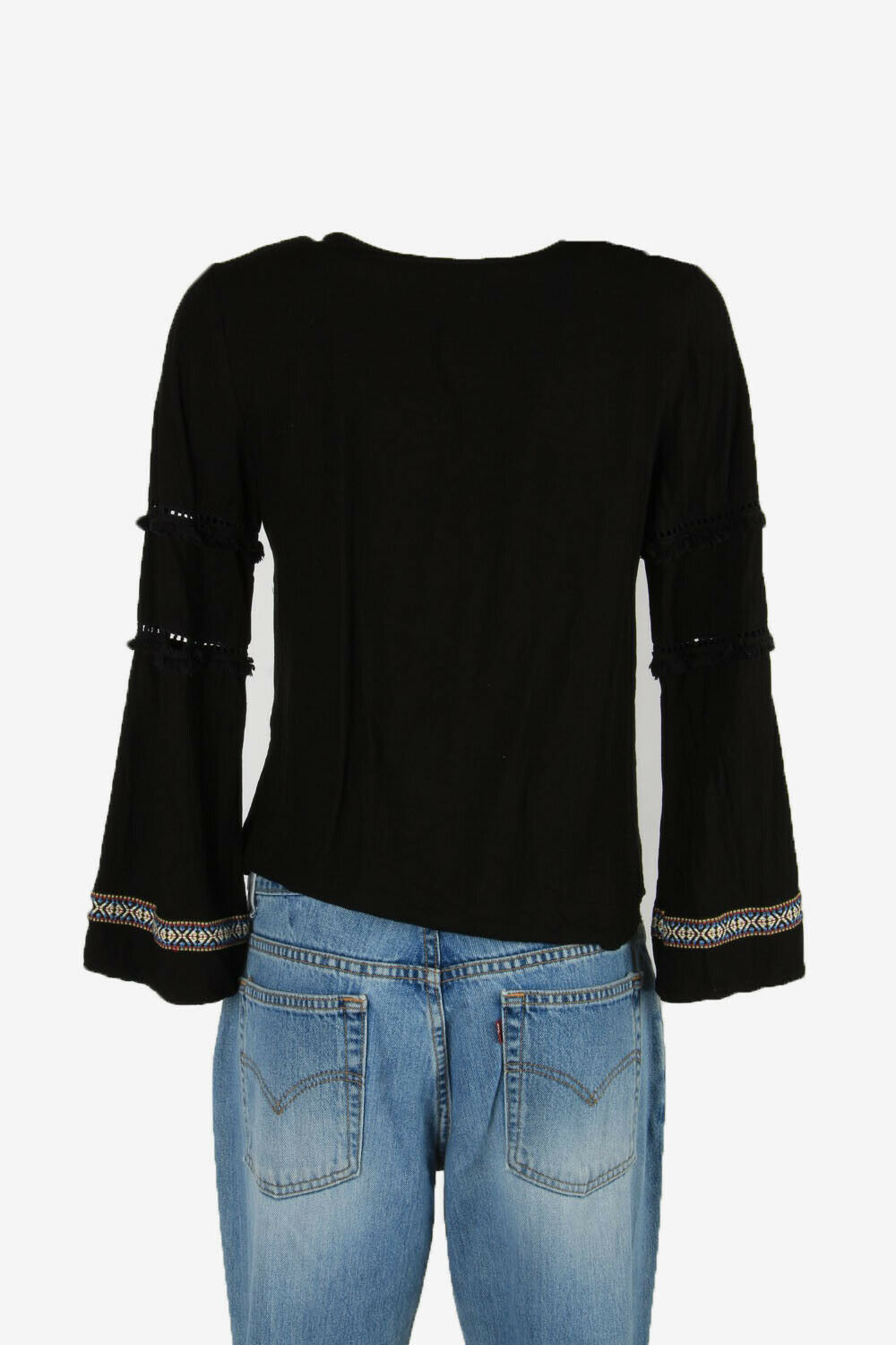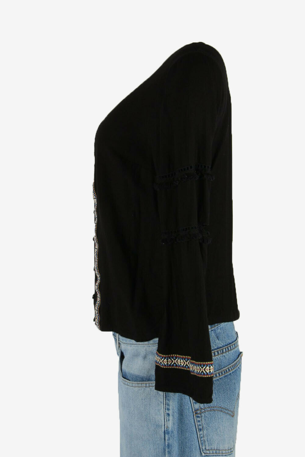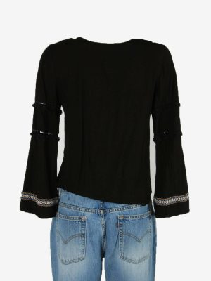 Vintage Embroidered Hippie Gypsy Blouse Tunic Top Kaftan Black S