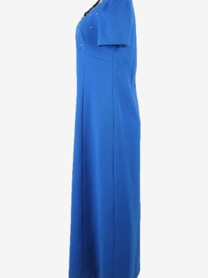 Vintage Embroidered Sleeveless Dress Retro 90s Blue Size UK 12/14