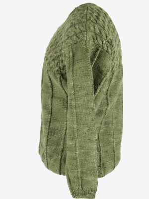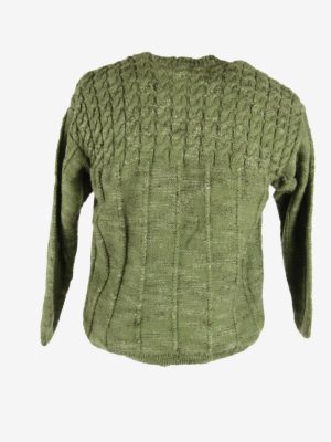Vintage Jumper Cable Knit Crew Neck Chunky Aran 90s Green Size One Size