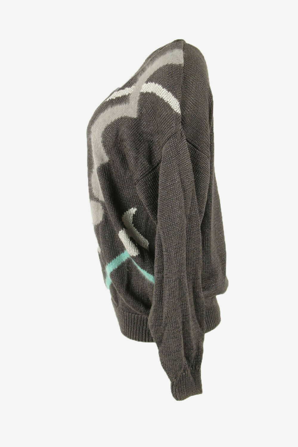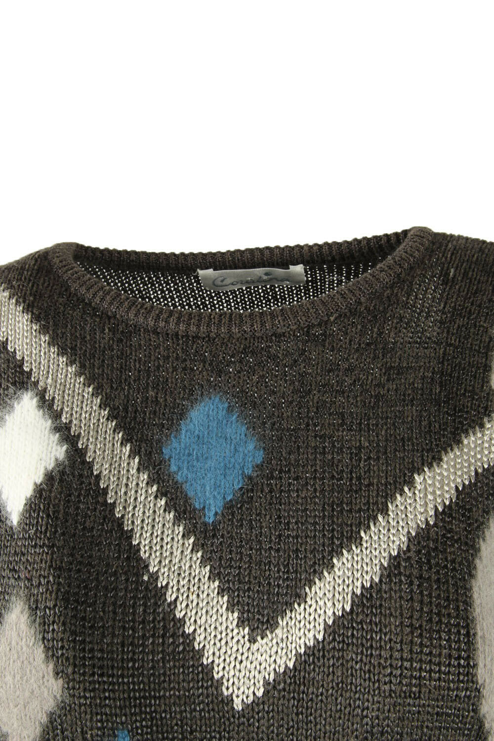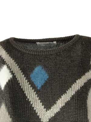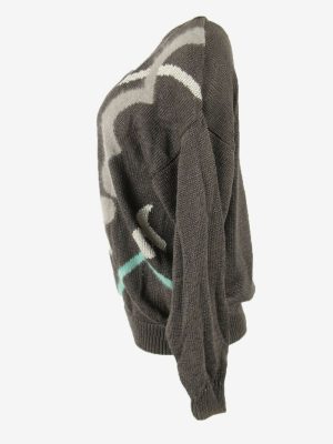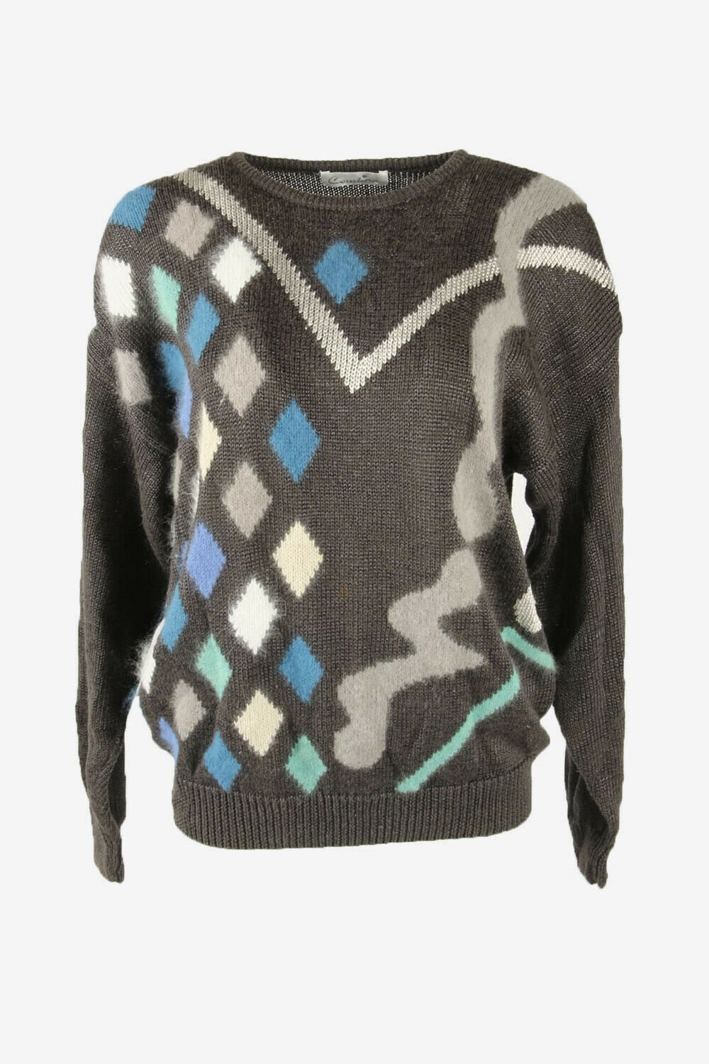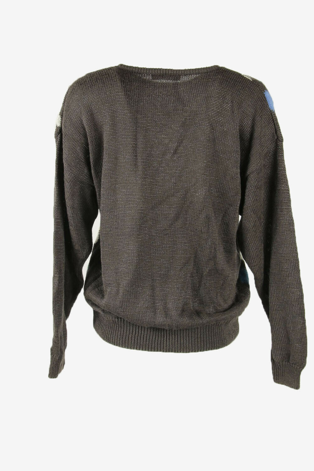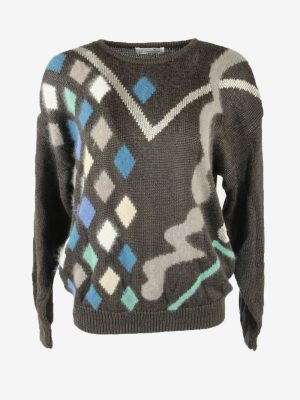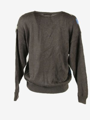 Vintage Jumper Diamond Long Sleeve Crew Neck Retro Grey Size L