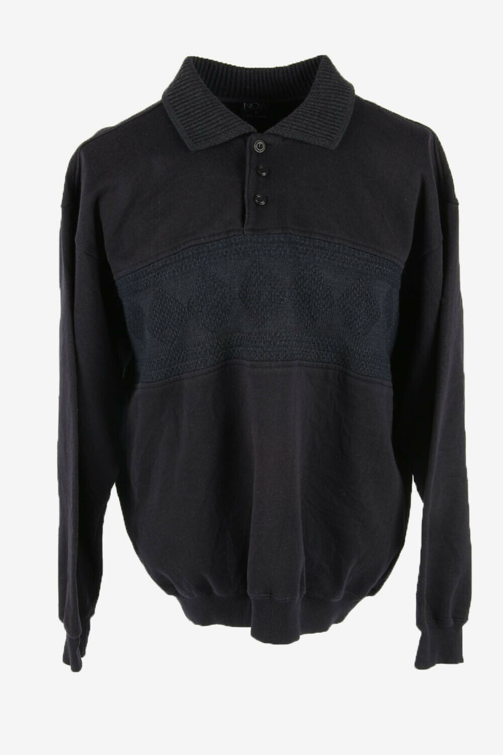 Vintage Jumper Long Sleeve Collared Retro Navy Size L