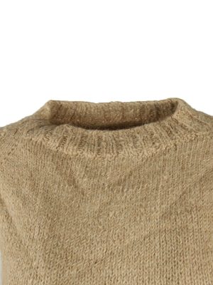 Vintage Jumper Plain Long Sleeve High Neck Warm Retro 90s Beige Size S