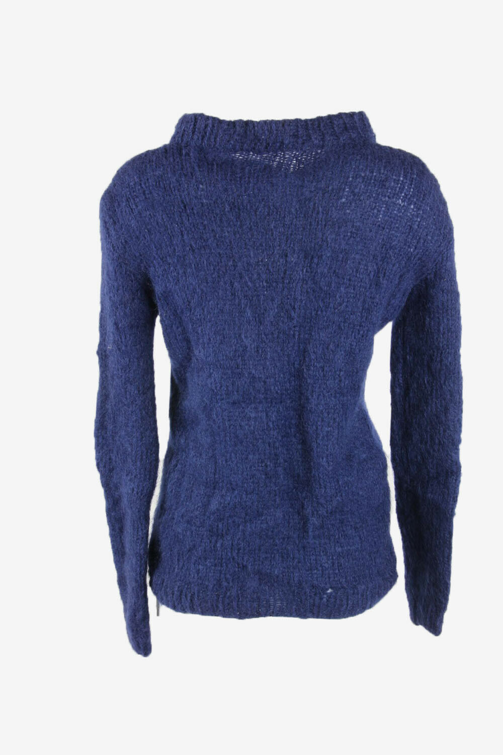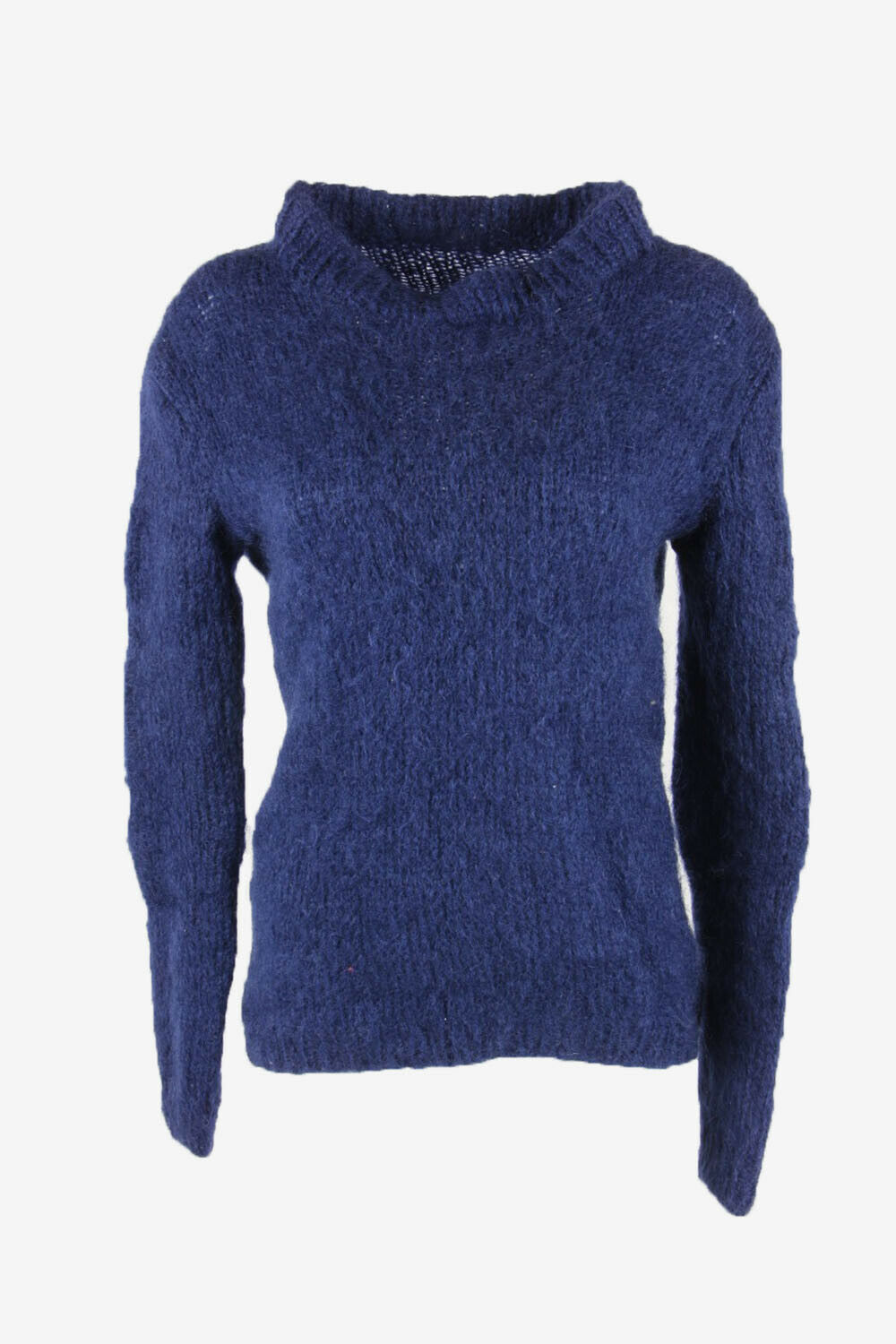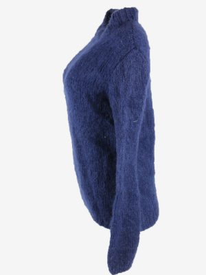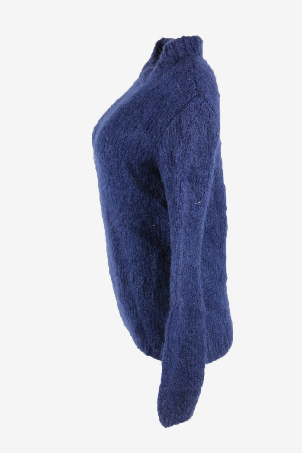 Vintage Jumper Plain Long Sleeve Round Neck Retro 90s Navy Size S