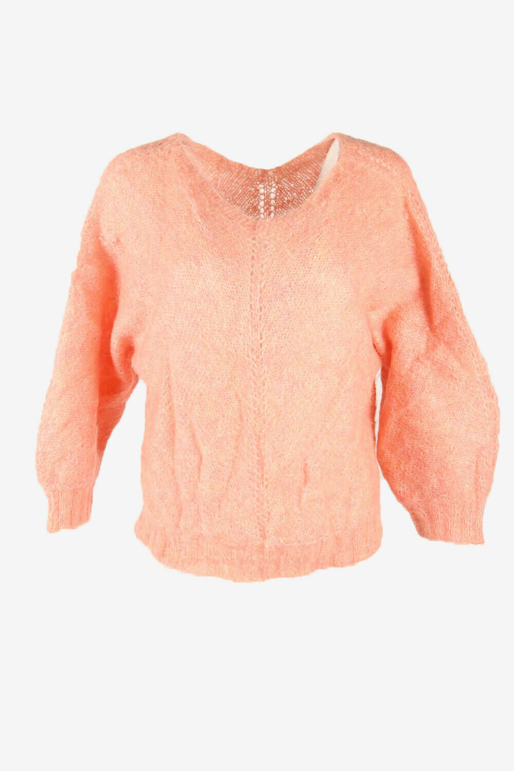 Vintage Jumper Plain Long Sleeve V Neck Warm Retro 90s Pink Size M