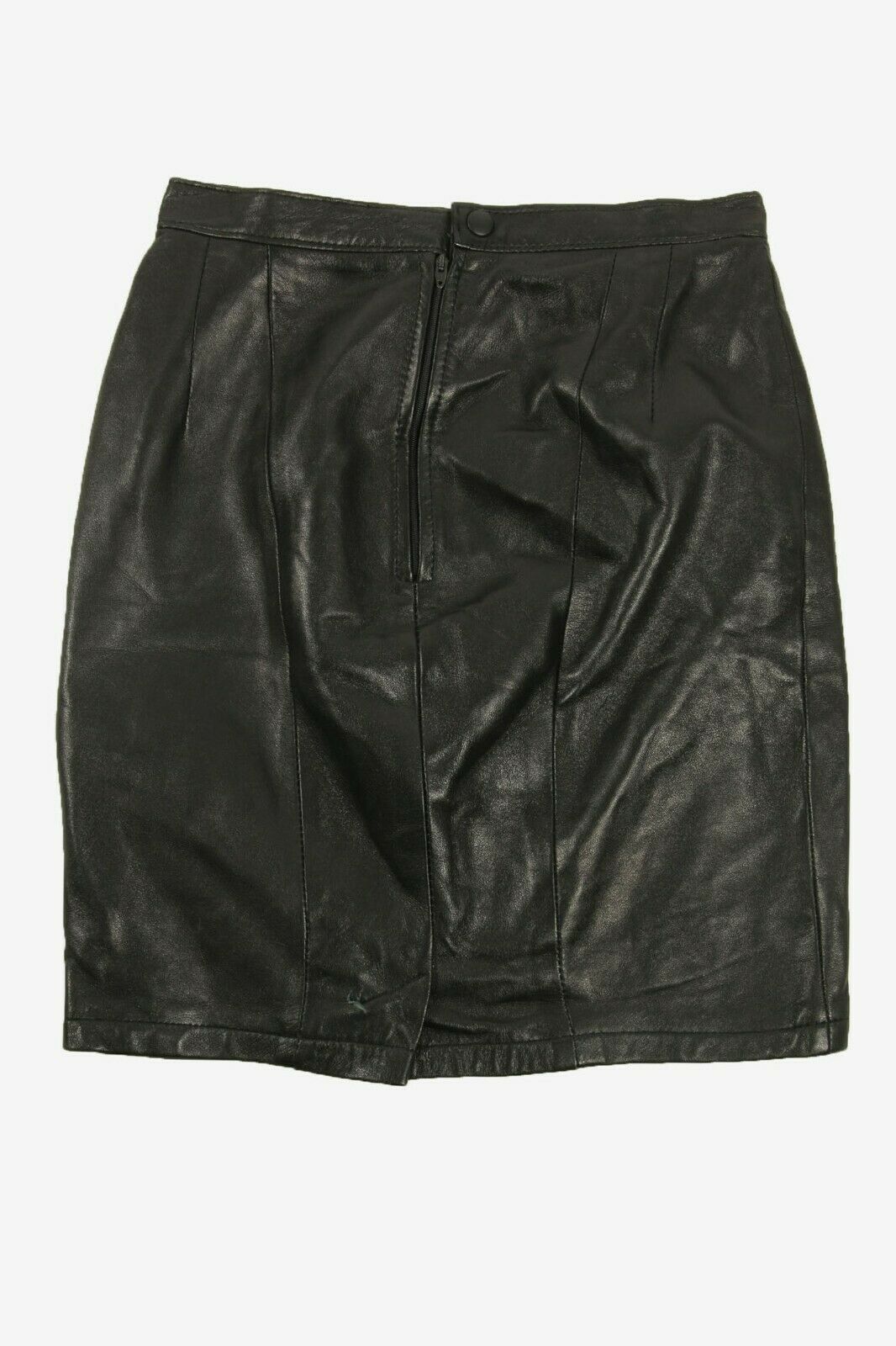 Vintage Leather Mini Skirt Lined Zip Up Party 90s Black Waist 24 in
