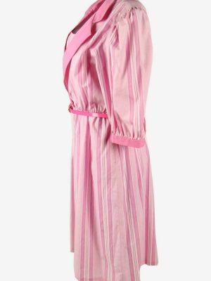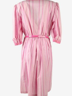 Vintage Long Dress Striped Belted Collared Neck Retro 90s Pink Size 40