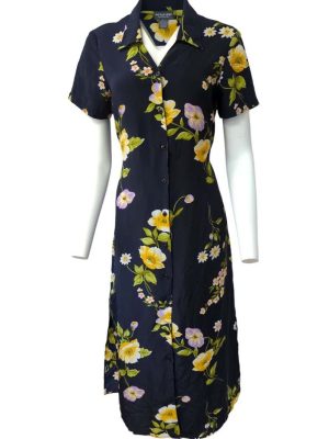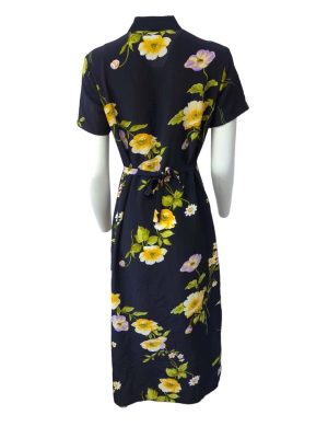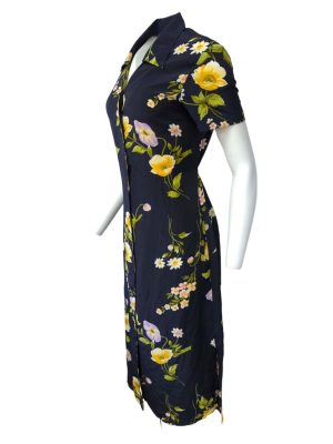 Vintage Maxi Dresses Navy Floral 40’s Short Sleeve Tea Dress Retro Size S
