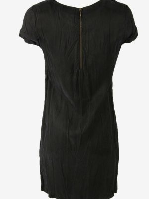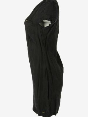 Vintage Midi Dresss Plain V Neck Back Zipper Retro 90s Black Size S