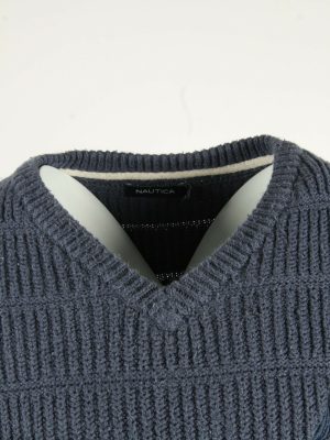 Vintage Nautica Jumper Pullover V Neck Sweater Retro 80s Navy Size L