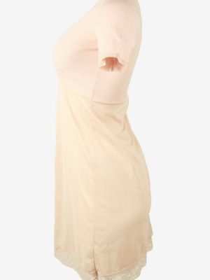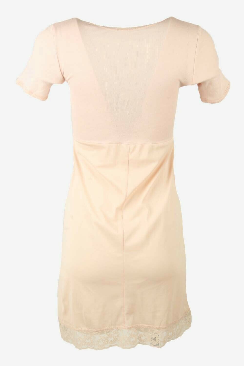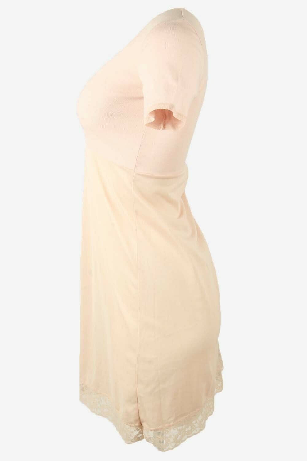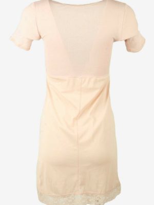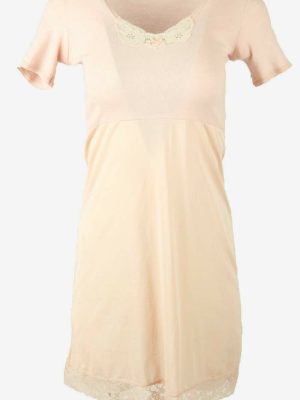 Vintage Short Sleeve Slip Dress Lace Nightdress 90s Baby Pink Size S