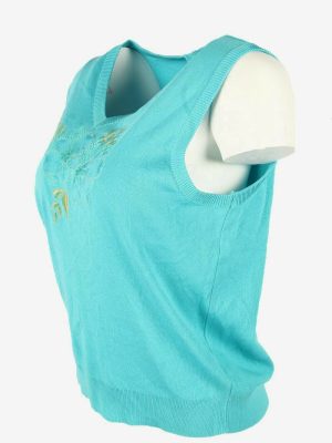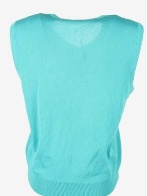 Vintage Sleeveless Jumper Tank Vest V Neck Retro 90s Turquoise
