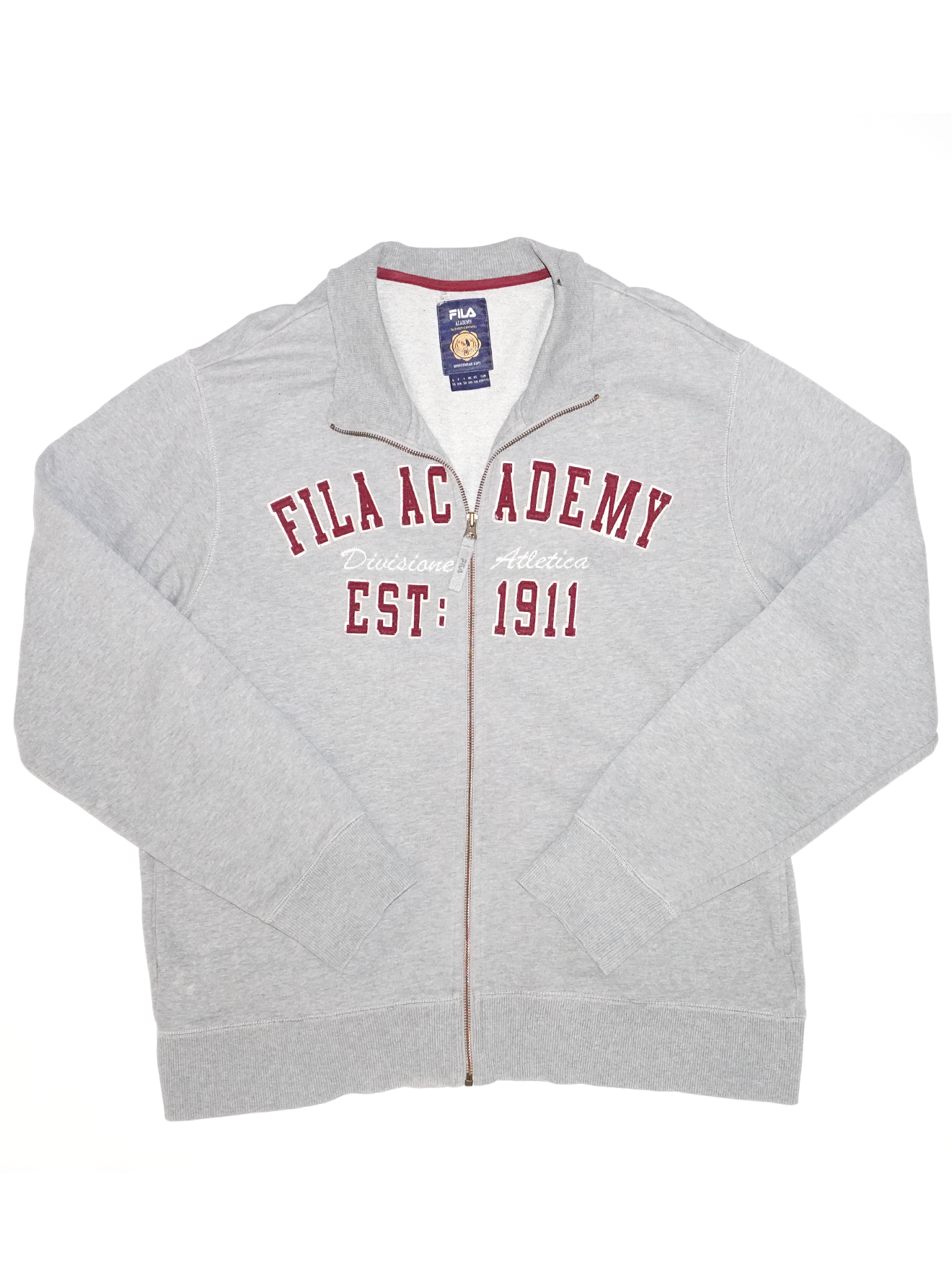 Vintage Sweatshirt Fila Academy Light Grey Zip Size XXL