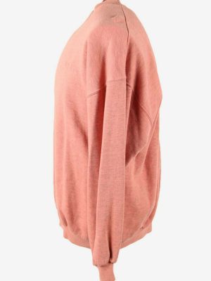 Vintage Sweatshirt Top Long Sleeve Crew Neck Plain Retro 90s Pink Size L