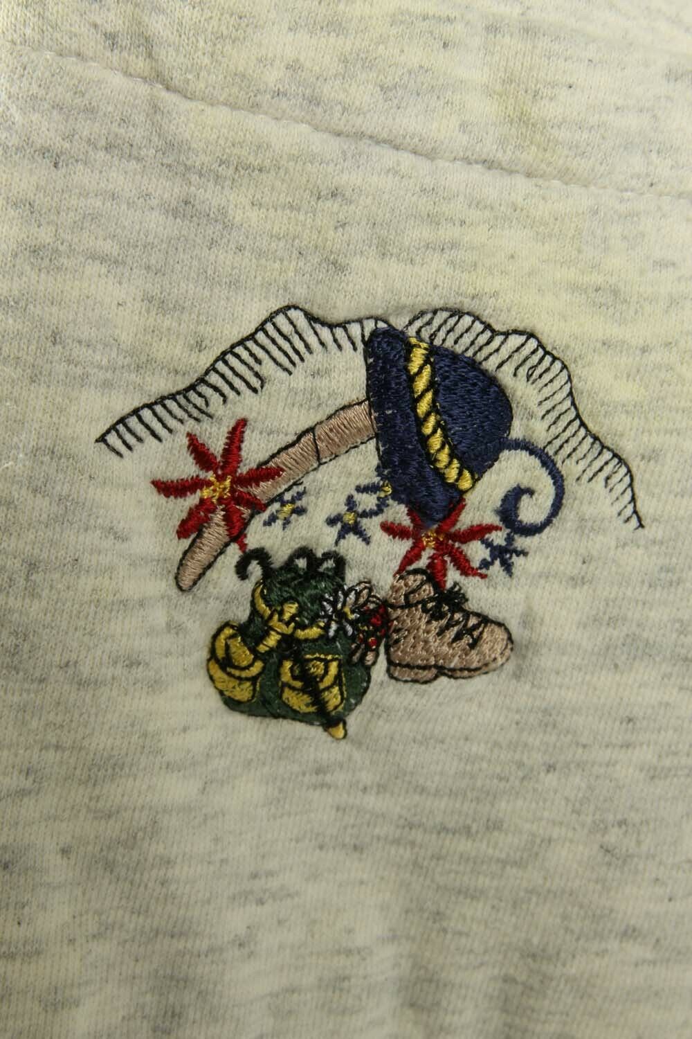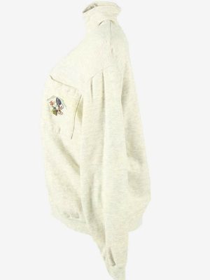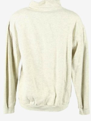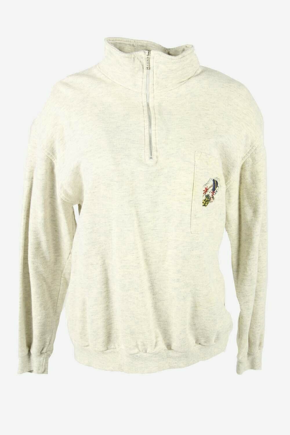 Vintage Sweatshirt Top Long Sleeve Embroidered Zip Neck 90s Beige 48/50