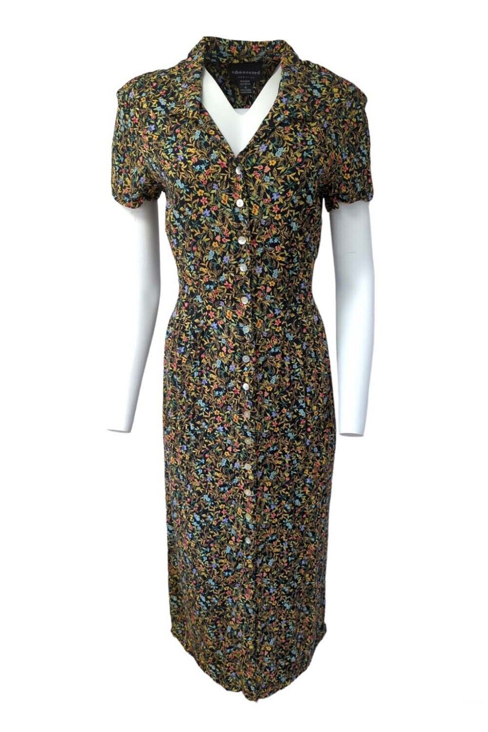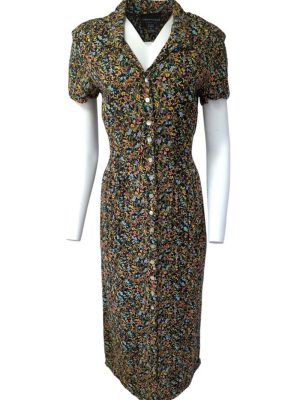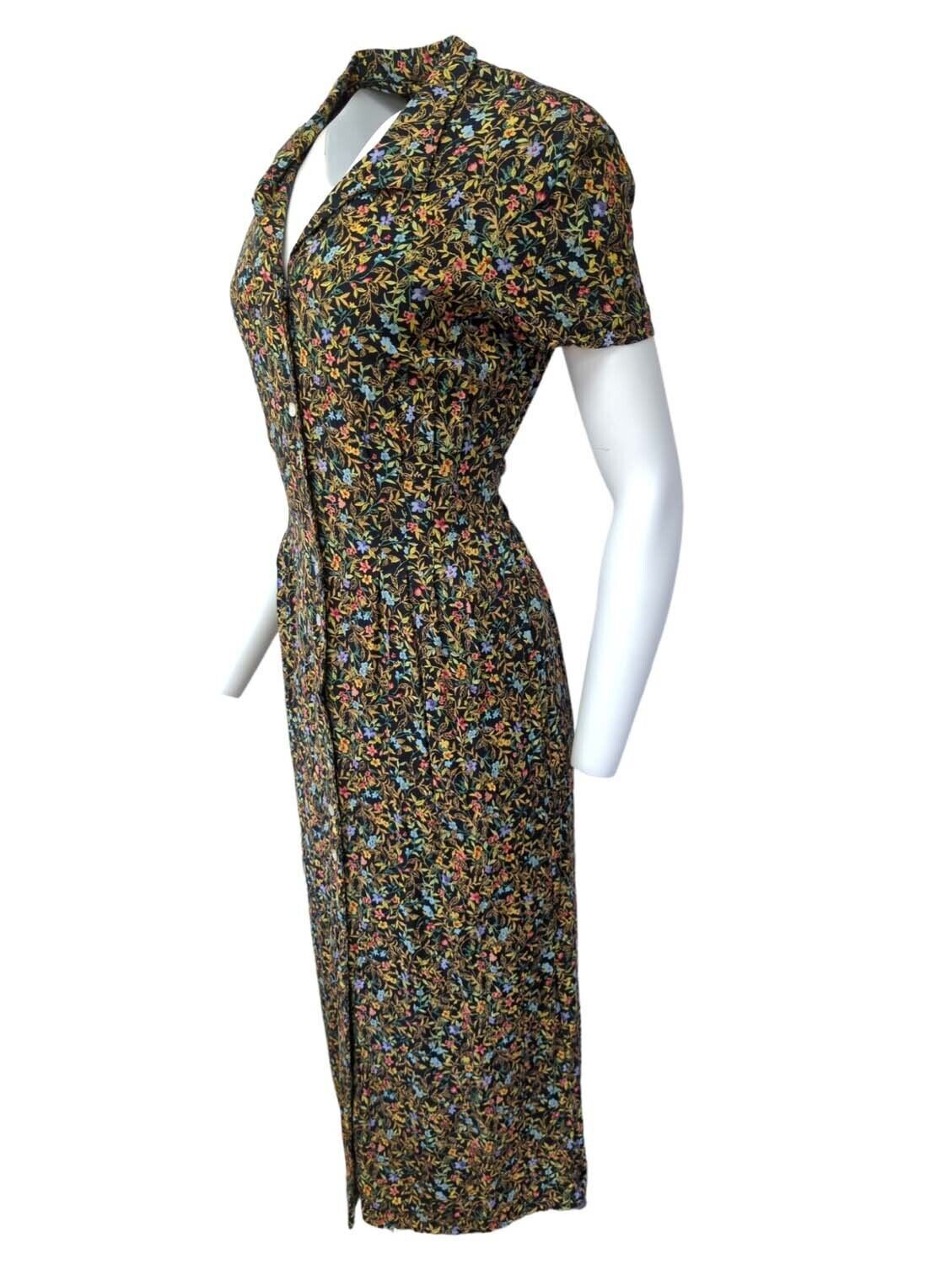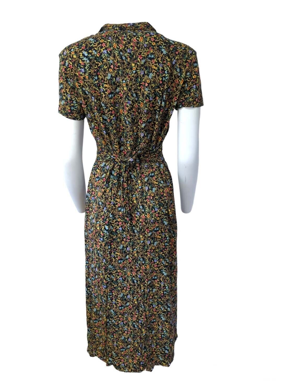 Vintage Womens Dress Short Sleeved 70s 80s Retro Dresses Floral Size 16