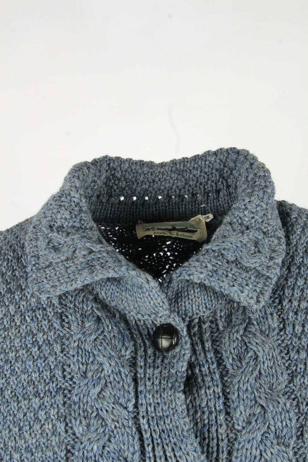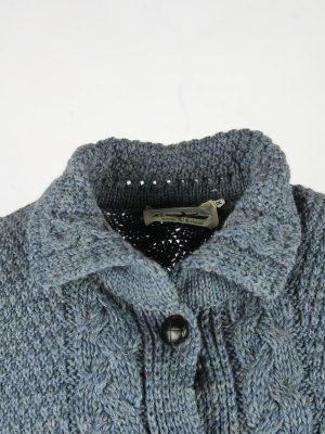 Vintage Wool Cardigan Cable Knit Collared Button Pullover Blue S